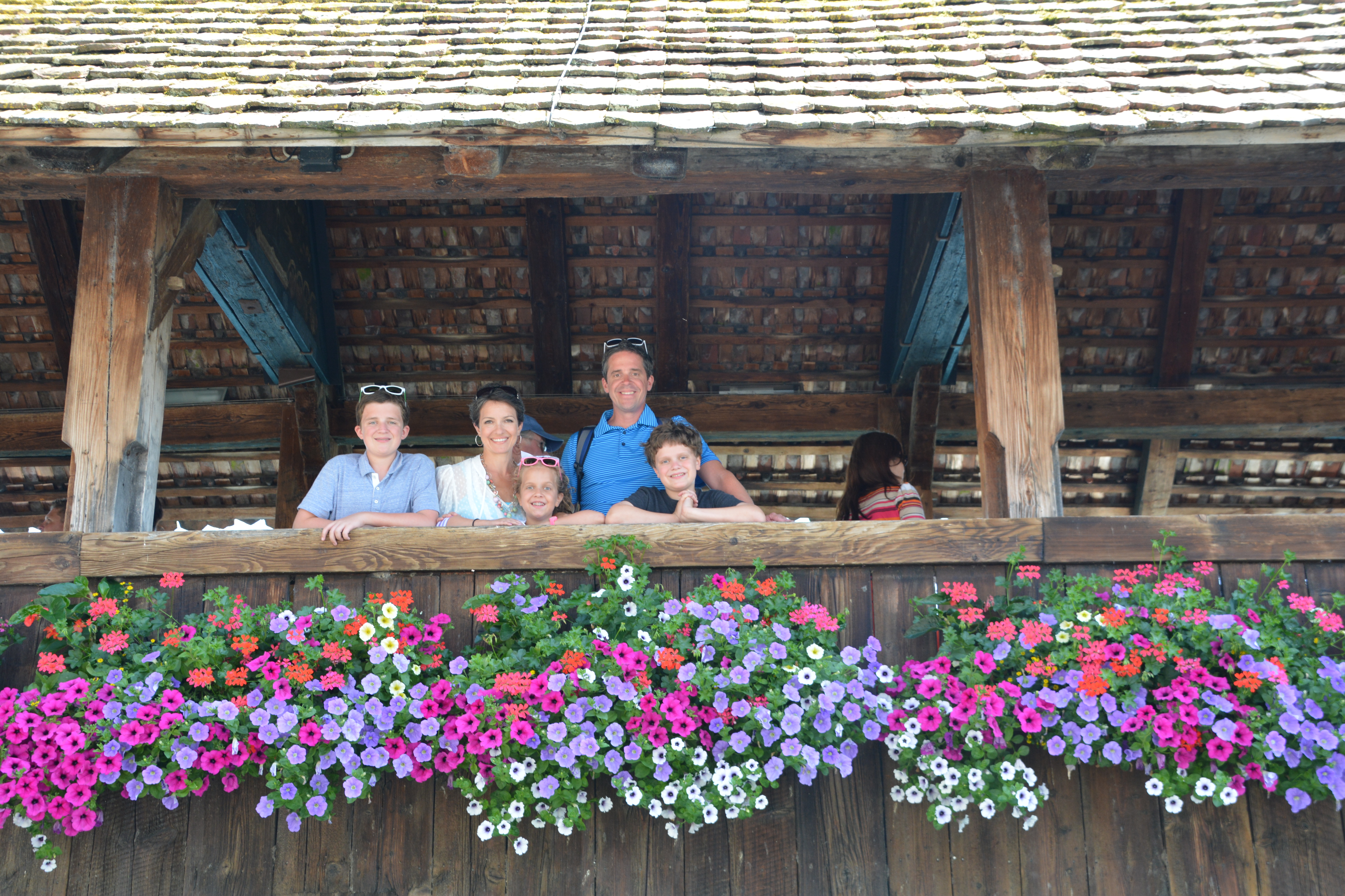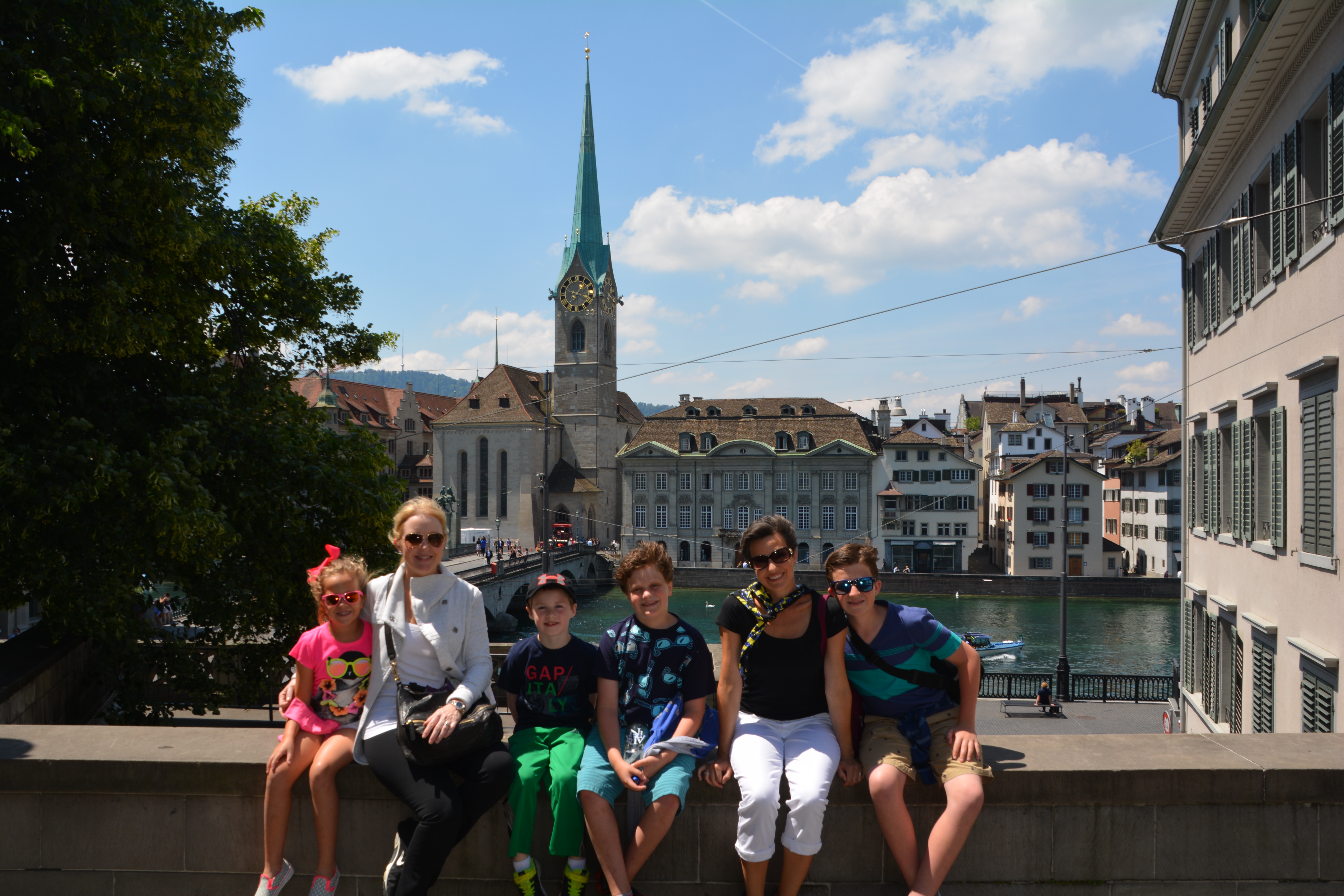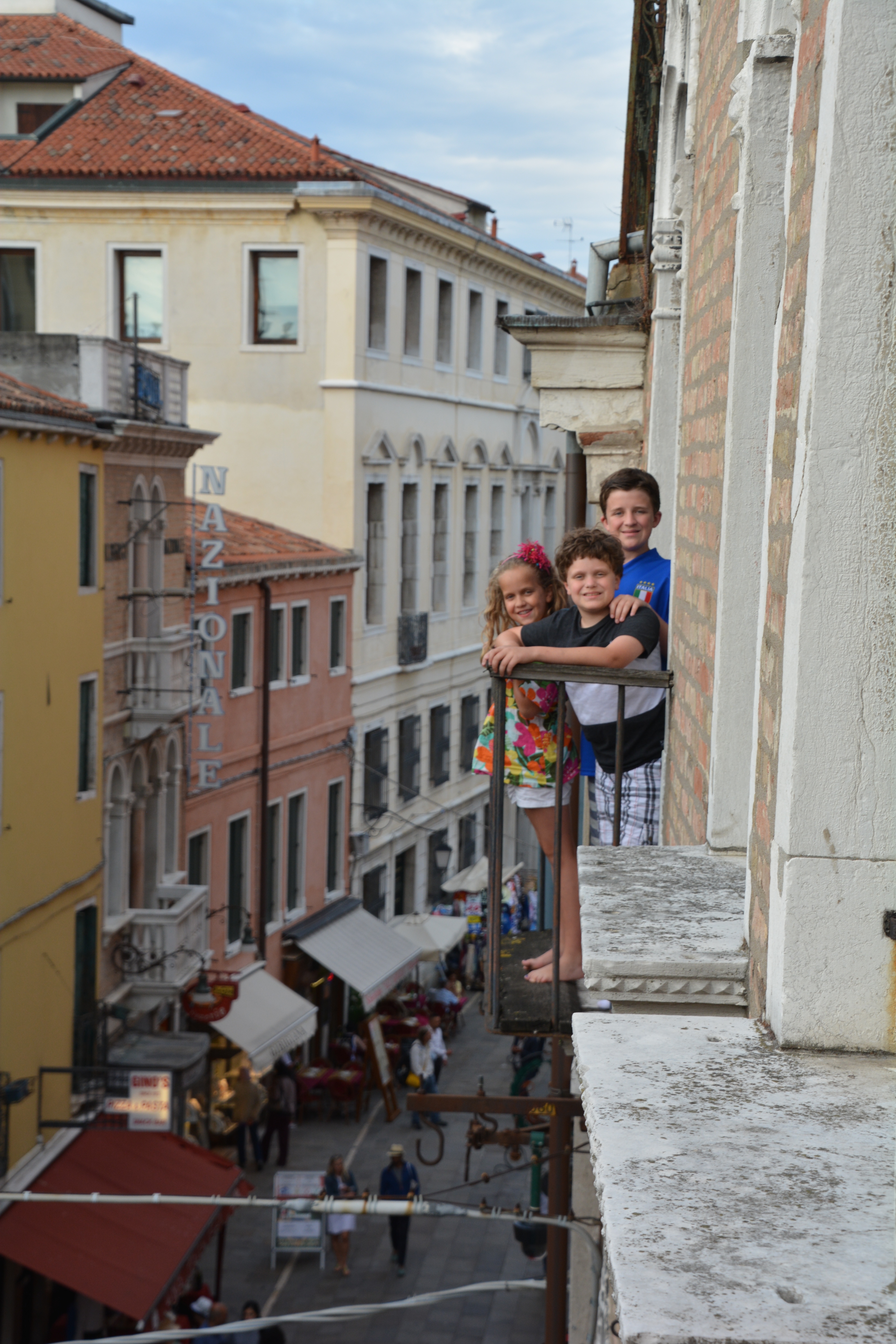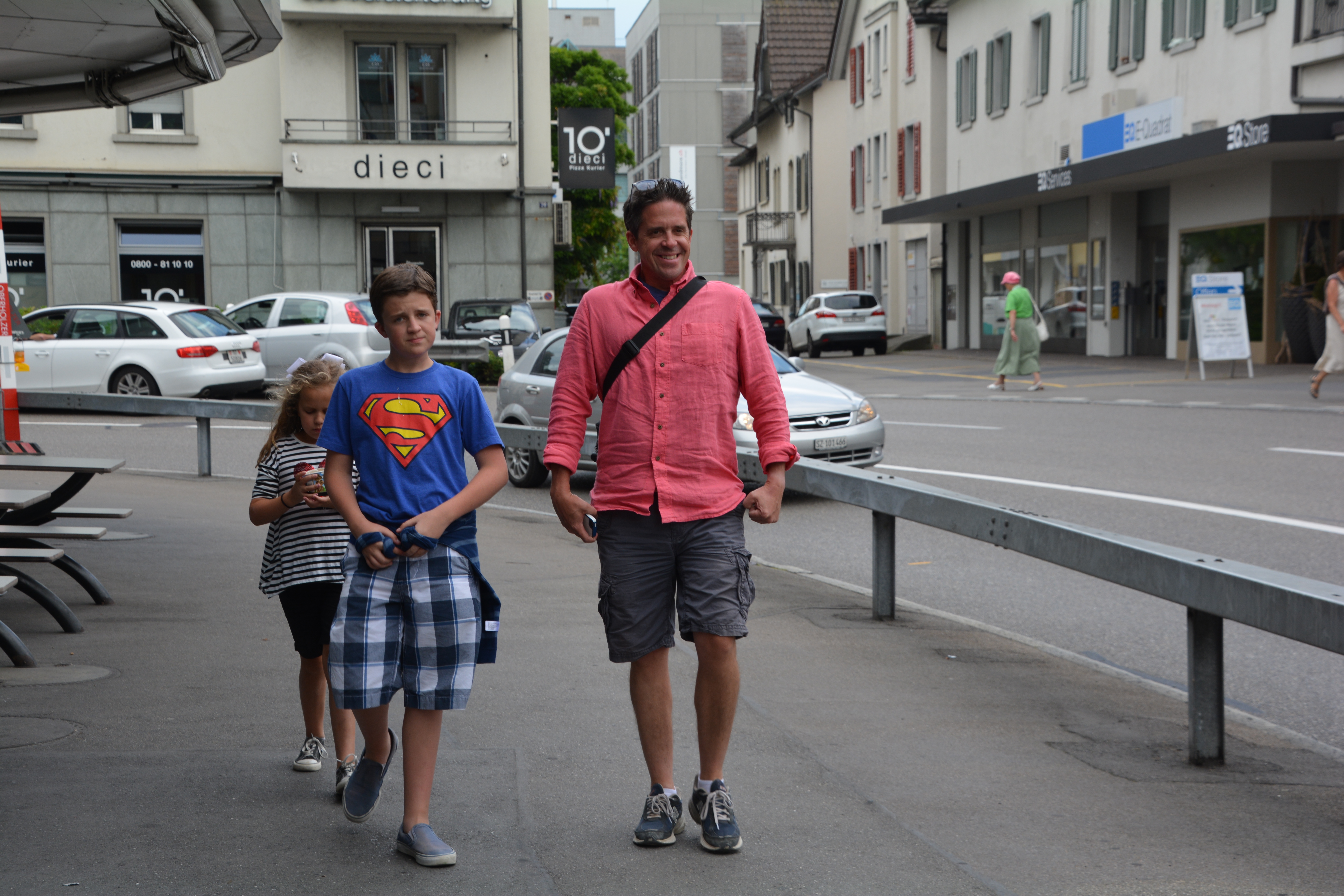 How wonderful to wake up looking out at the Austrian mountains! We wandered down to breakfast. Our first full day in Salzburg demanded a little housekeeping first – we had a MOUND of dirty laundry to work through. After breakfast we navigated our way down Moosstrasse to the “Green Clean” laundromat. Very cool but not cheap. We’d insisted the kids come along to help, and they quickly found a park down the street where they could play with Wilson and make each other dizzyingly sick on the old-school merry-go-throw-up. In the laundromat, we met the mother of a sweet family from the States who was in the middle of their OWN summer-long tour of Europe. Though they were CAMPING. In their 18-foot RV. Mom, Dad, and all TWELVE of their kids! Yikes! Now THAT’s togetherness.