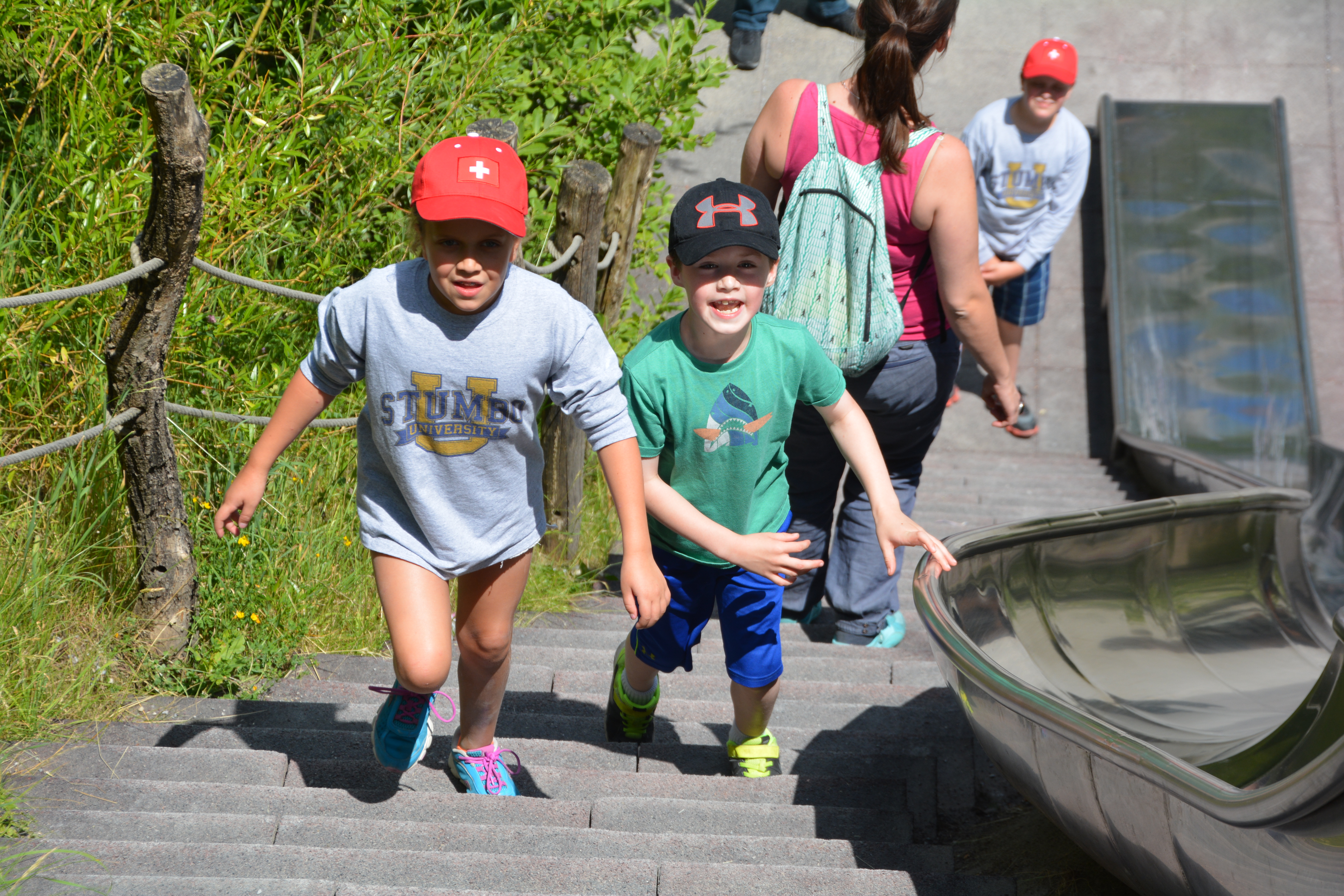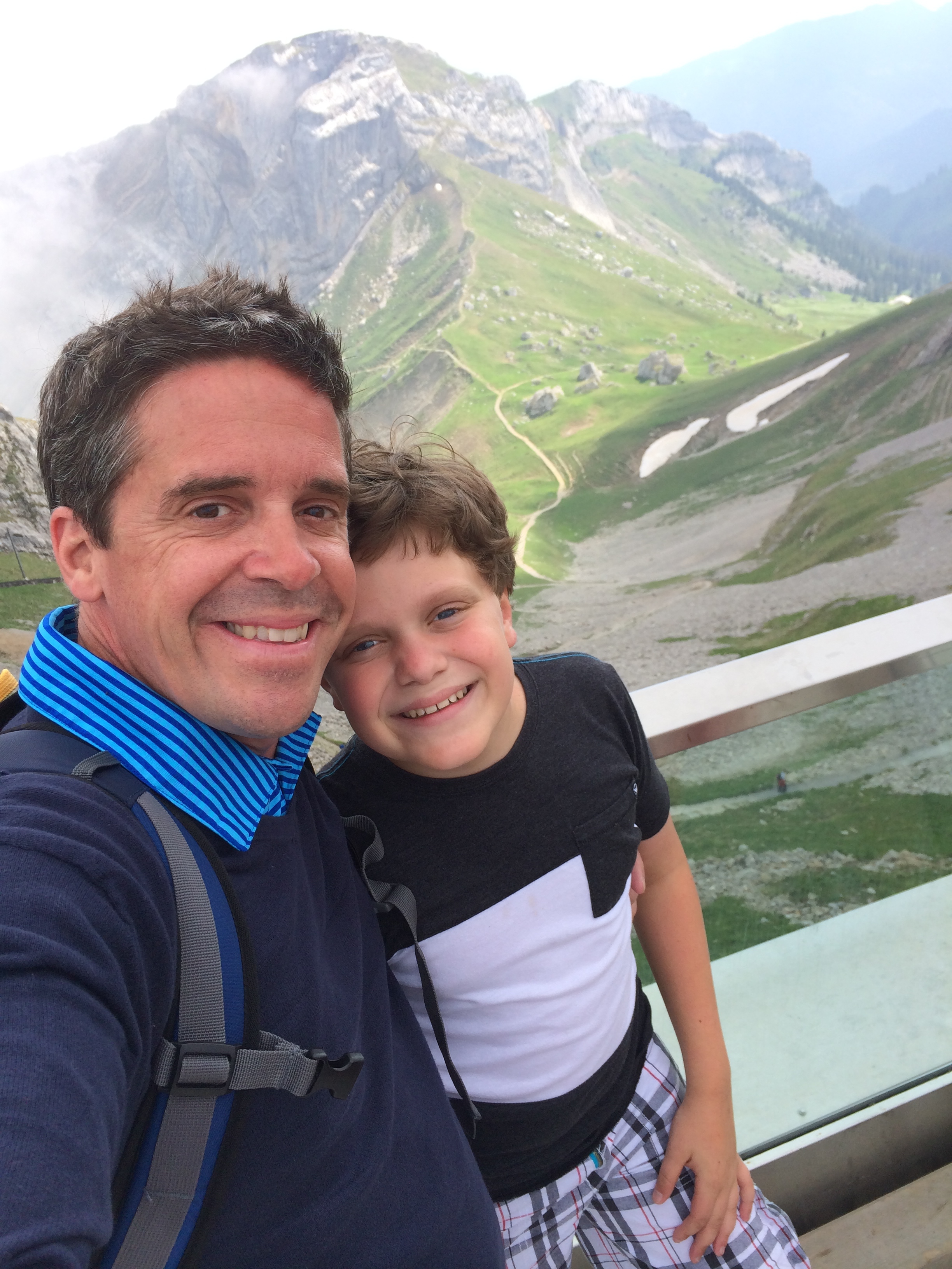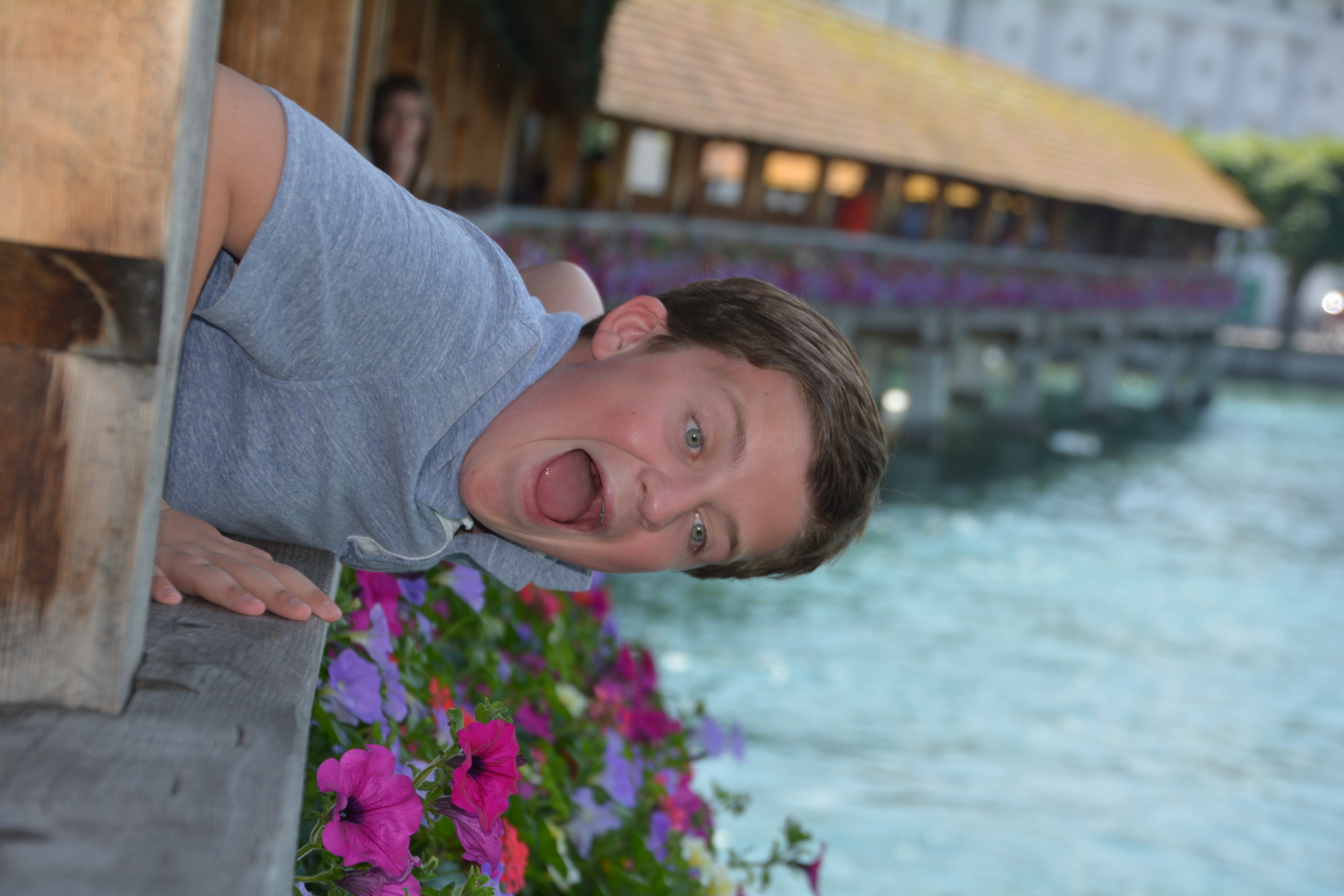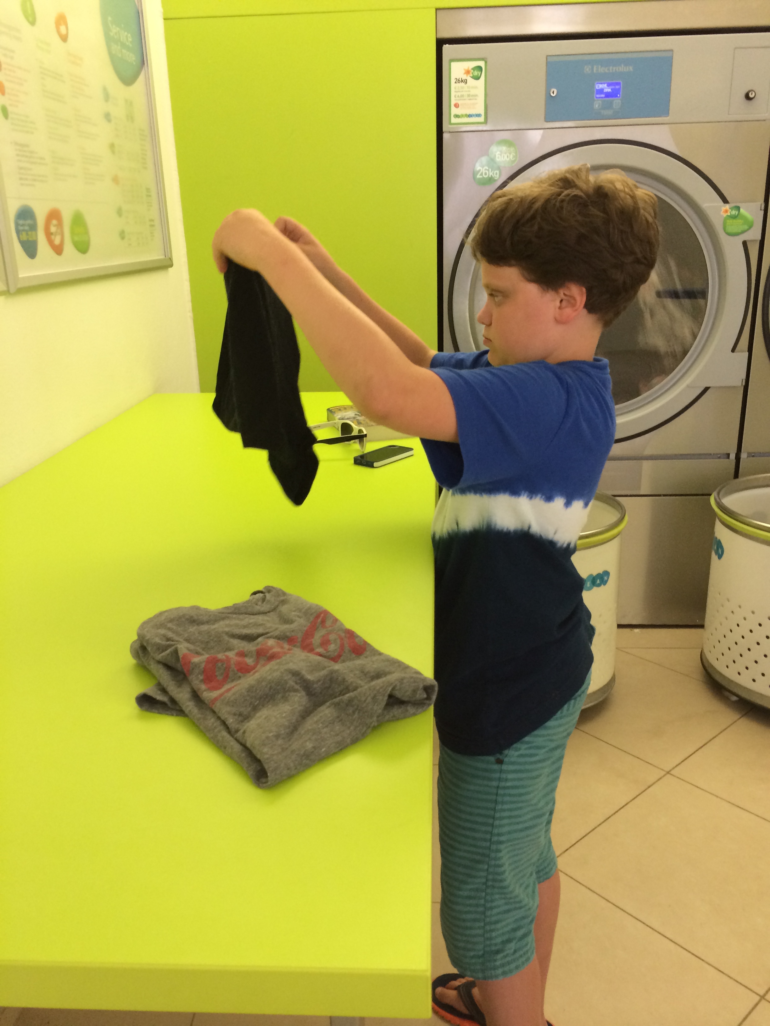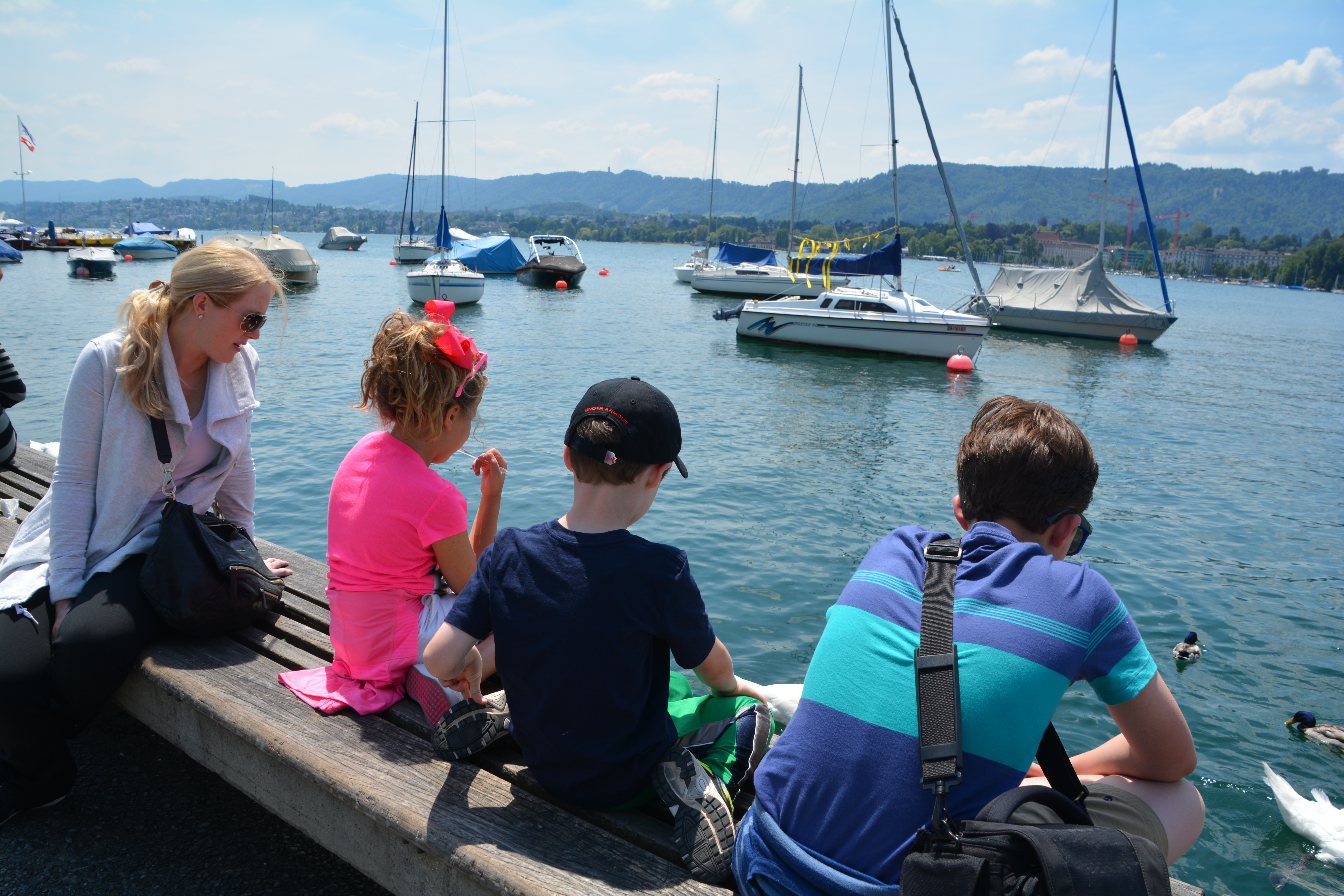 How wonderful to wake up looking out at the Austrian mountains! We wandered down to breakfast. Our first full day in Salzburg demanded a little housekeeping first – we had a MOUND of dirty laundry to work through. After breakfast we navigated our way down Moosstrasse to the “Green Clean” laundromat. Very cool but not cheap. We’d insisted the kids come along to help, and they quickly found a park down the street where they could play with Wilson and make each other dizzyingly sick on the old-school merry-go-throw-up. In the laundromat, we met the mother of a sweet family from the States who was in the middle of their OWN summer-long tour of Europe. Though they were CAMPING. In their 18-foot RV. Mom, Dad, and all TWELVE of their kids! Yikes! Now THAT’s togetherness.
