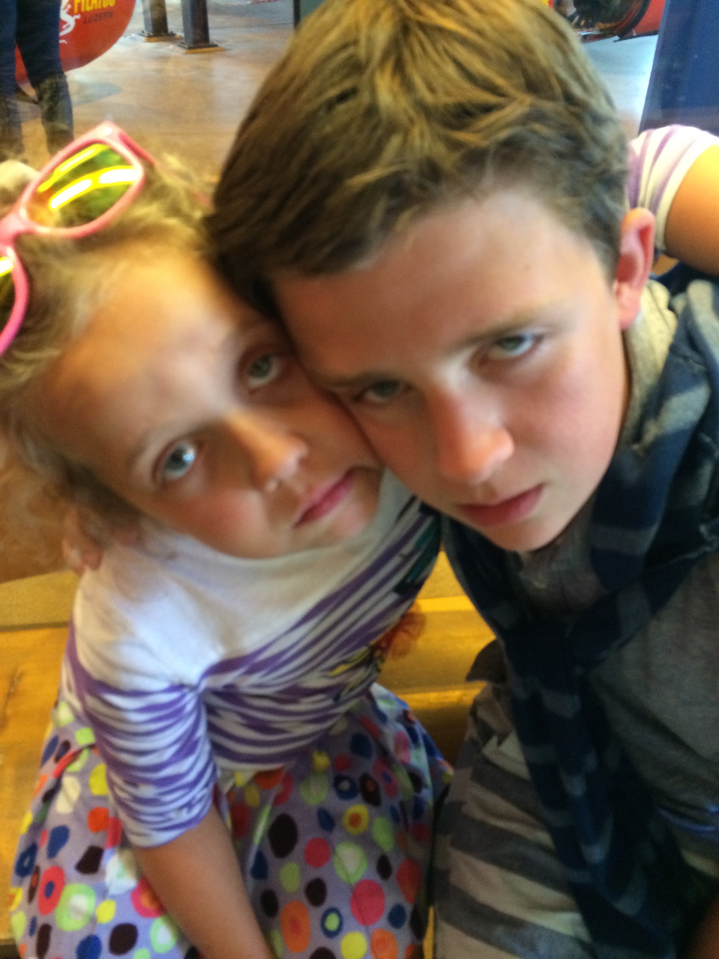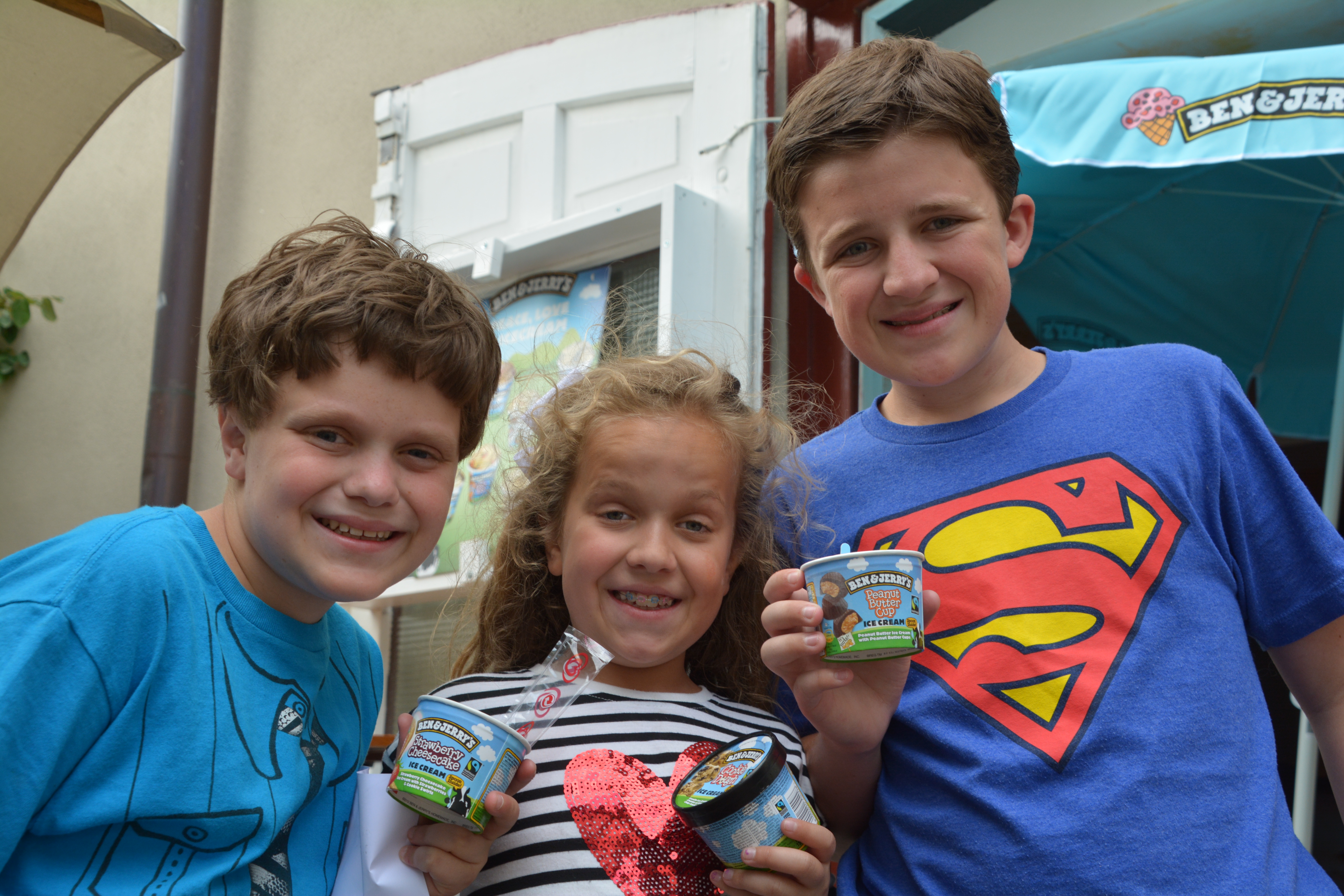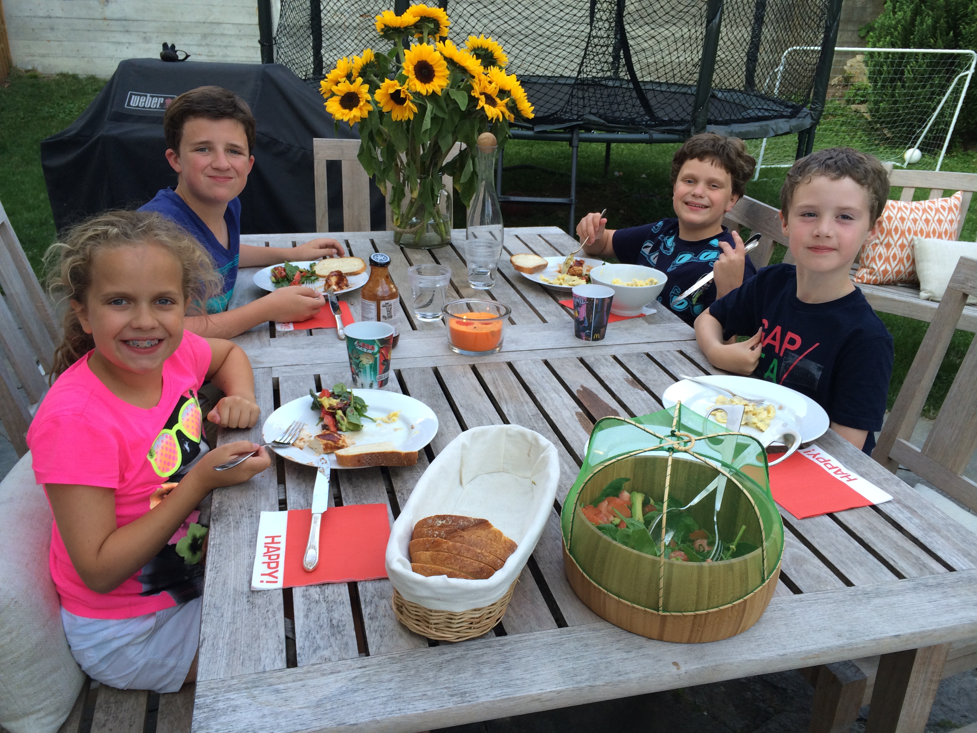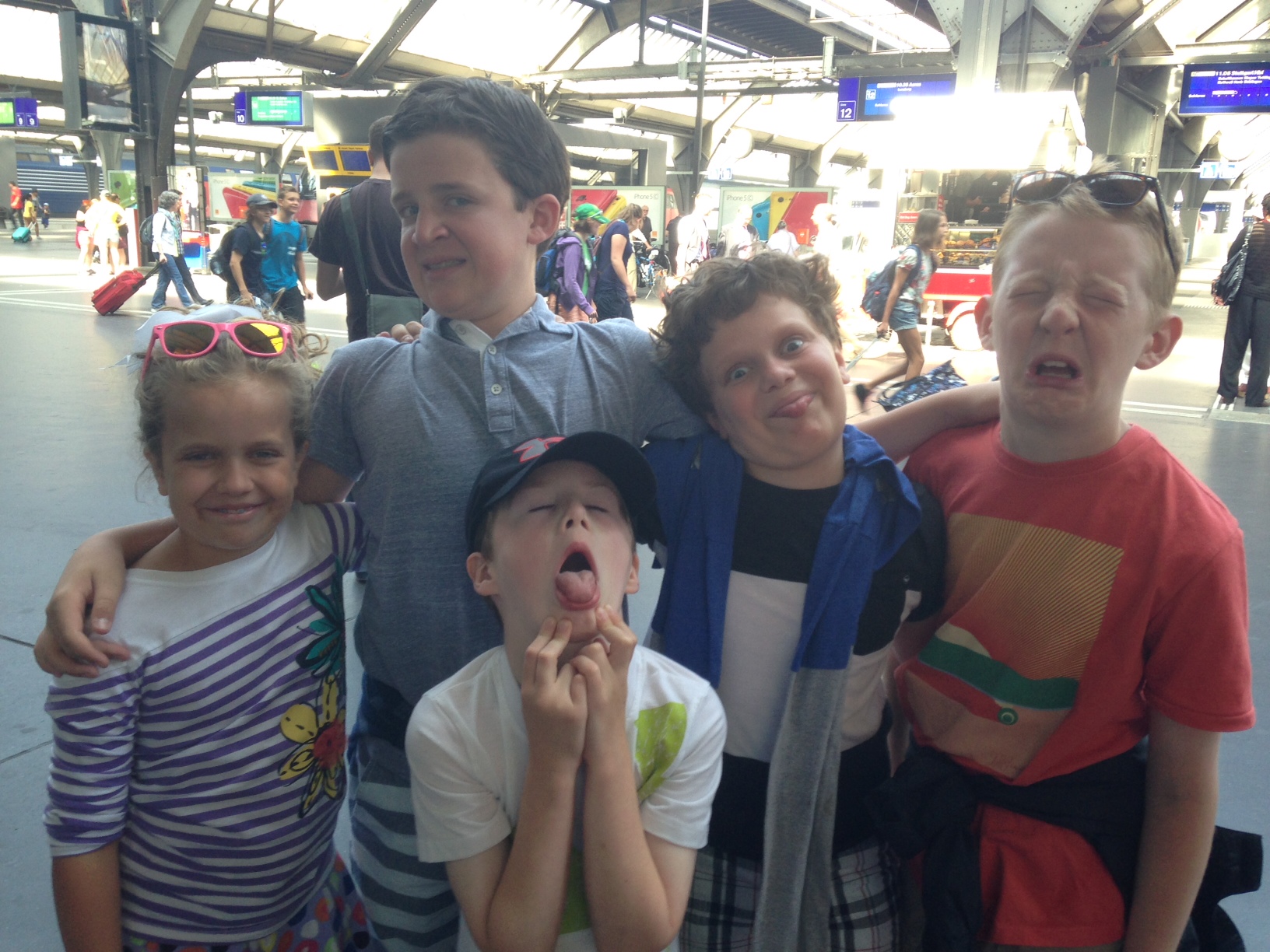 How wonderful to wake up looking out at the Austrian mountains! We wandered down to breakfast. Our first full day in Salzburg demanded a little housekeeping first – we had a MOUND of dirty laundry to work through. After breakfast we navigated our way down Moosstrasse to the “Green Clean” laundromat. Very cool but not cheap. We’d insisted the kids come along to help, and they quickly found a park down the street where they could play with Wilson and make each other dizzyingly sick on the old-school merry-go-throw-up. In the laundromat, we met the mother of a sweet family from the States who was in the middle of their OWN summer-long tour of Europe. Though they were CAMPING. In their 18-foot RV. Mom, Dad, and all TWELVE of their kids! Yikes! Now THAT’s togetherness.