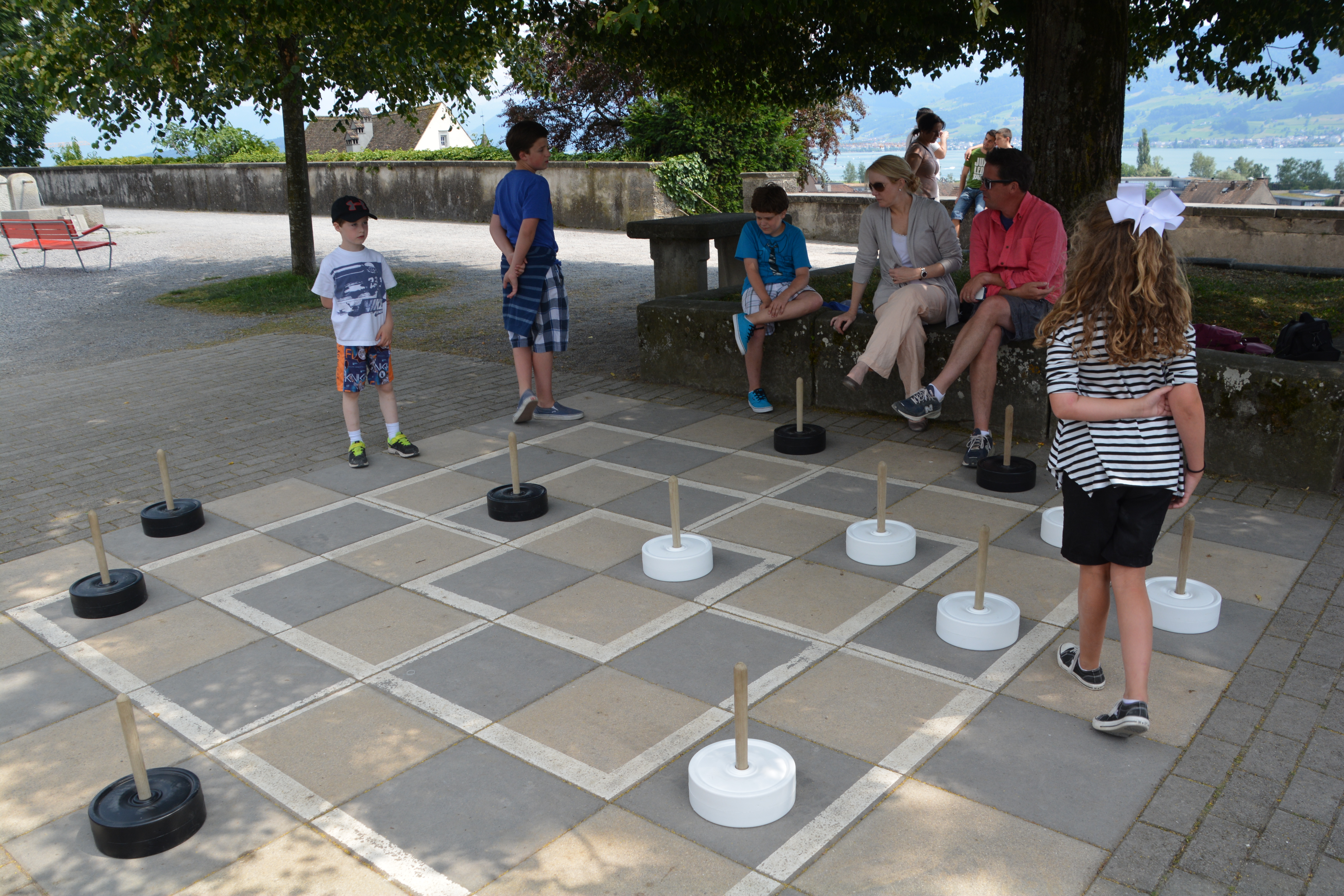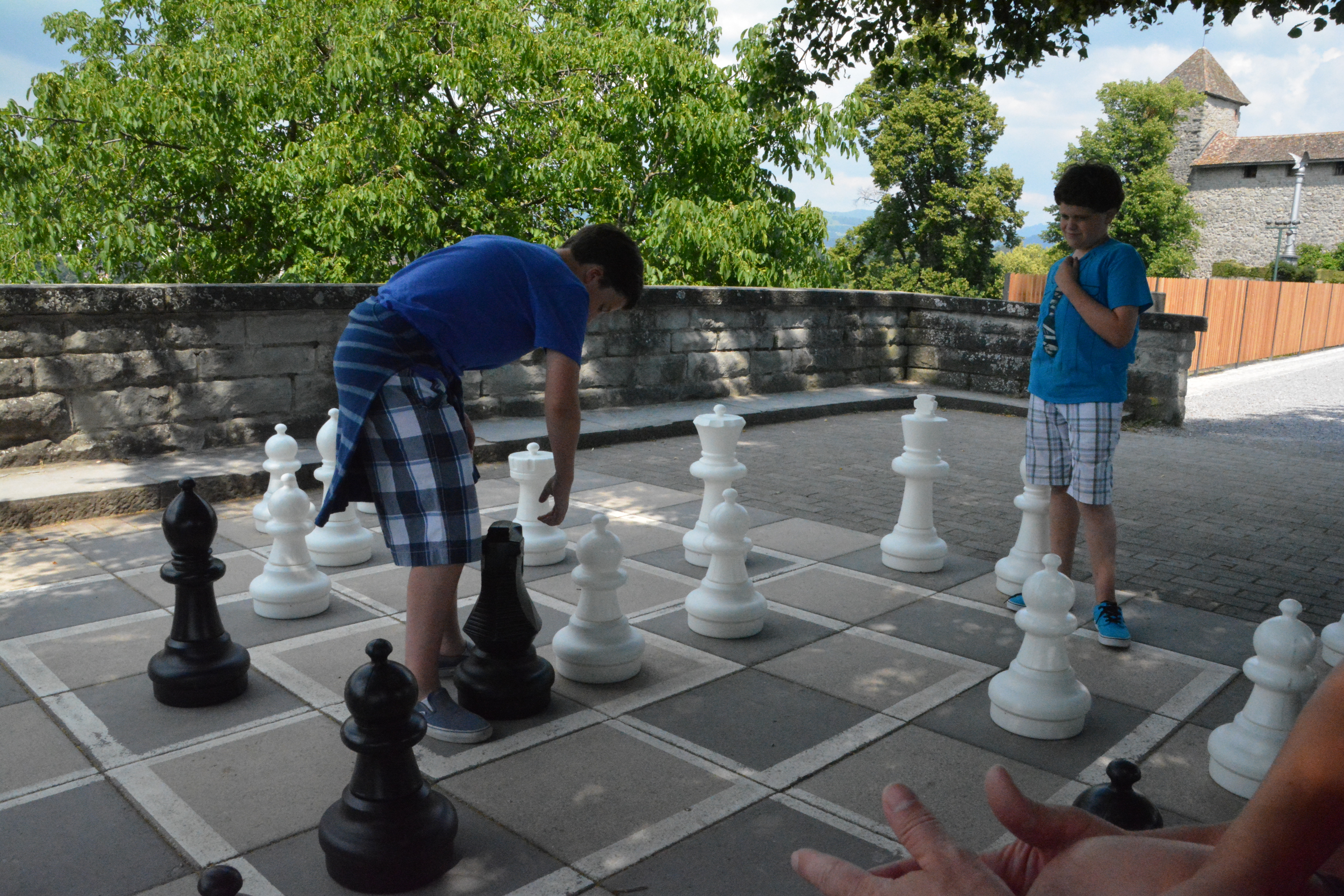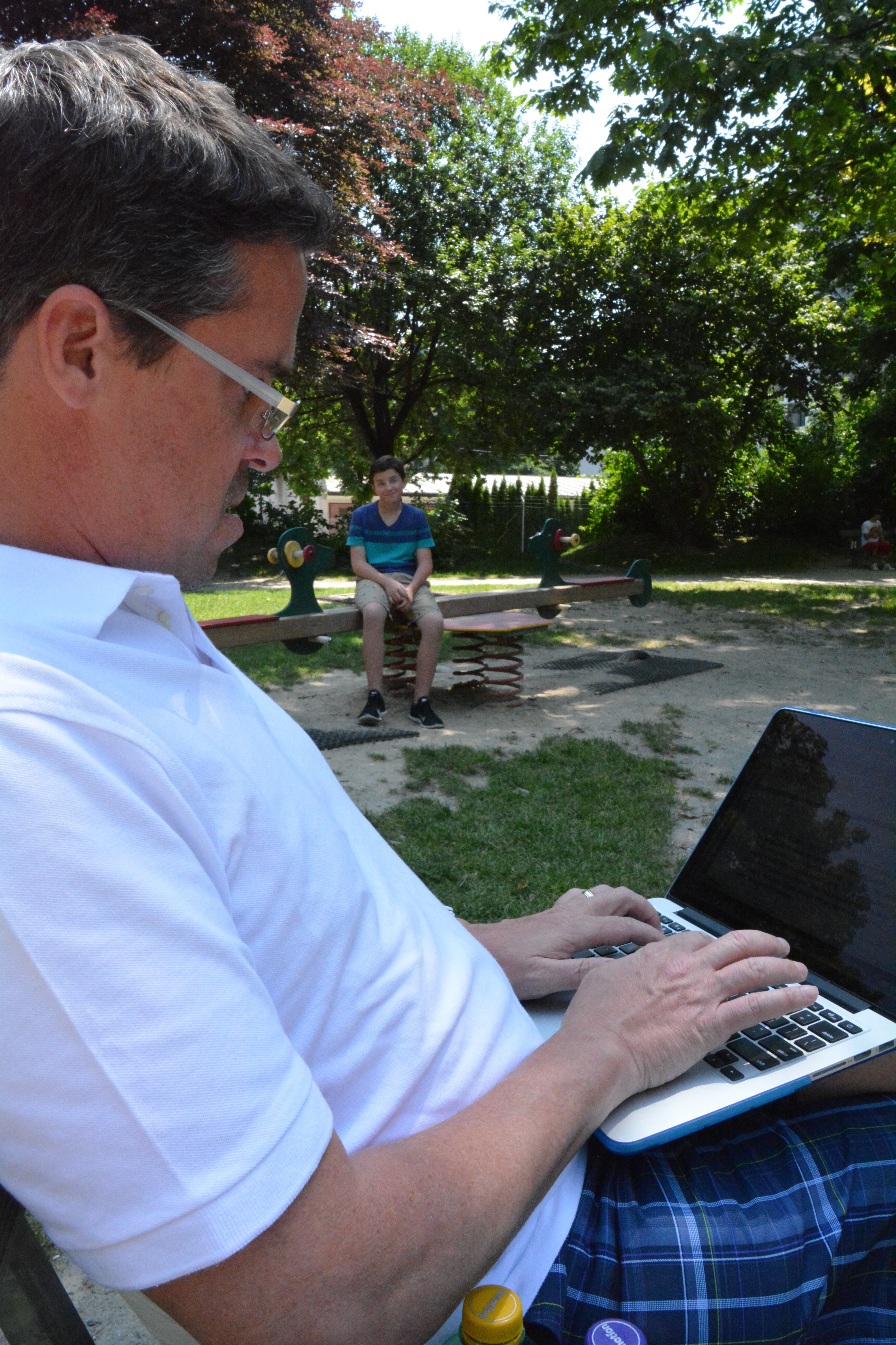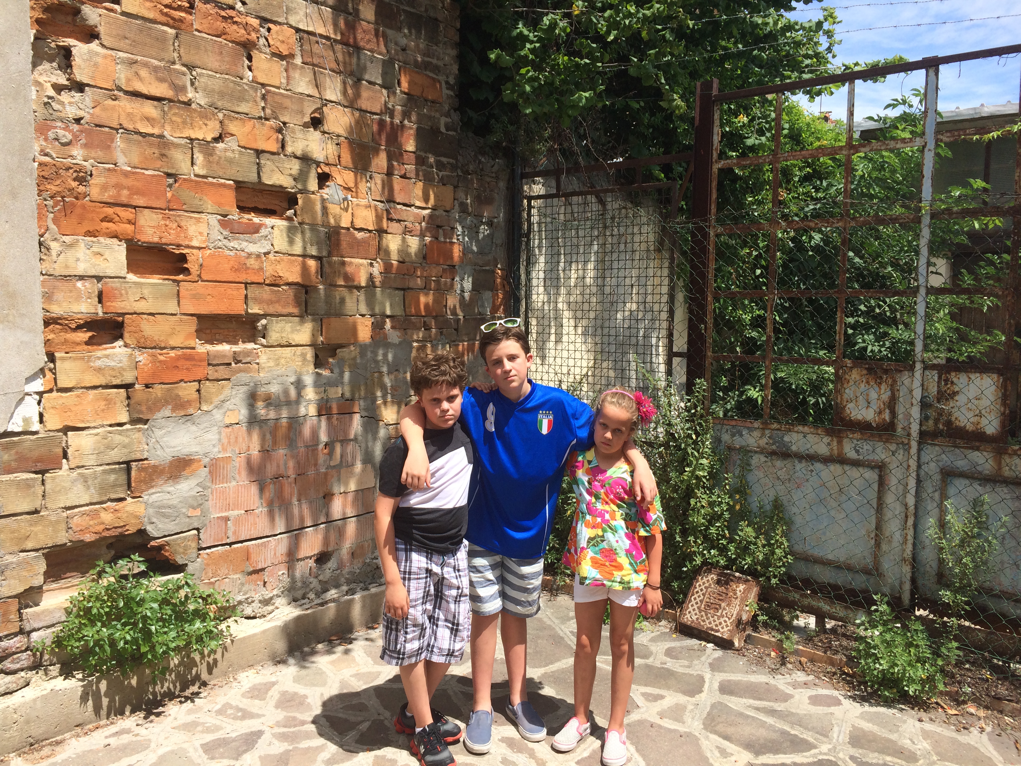 How wonderful to wake up looking out at the Austrian mountains! We wandered down to breakfast. Our first full day in Salzburg demanded a little housekeeping first – we had a MOUND of dirty laundry to work through. After breakfast we navigated our way down Moosstrasse to the “Green Clean” laundromat. Very cool but not cheap. We’d insisted the kids come along to help, and they quickly found a park down the street where they could play with Wilson and make each other dizzyingly sick on the old-school merry-go-throw-up. In the laundromat, we met the mother of a sweet family from the States who was in the middle of their OWN summer-long tour of Europe. Though they were CAMPING. In their 18-foot RV. Mom, Dad, and all TWELVE of their kids! Yikes! Now THAT’s togetherness.