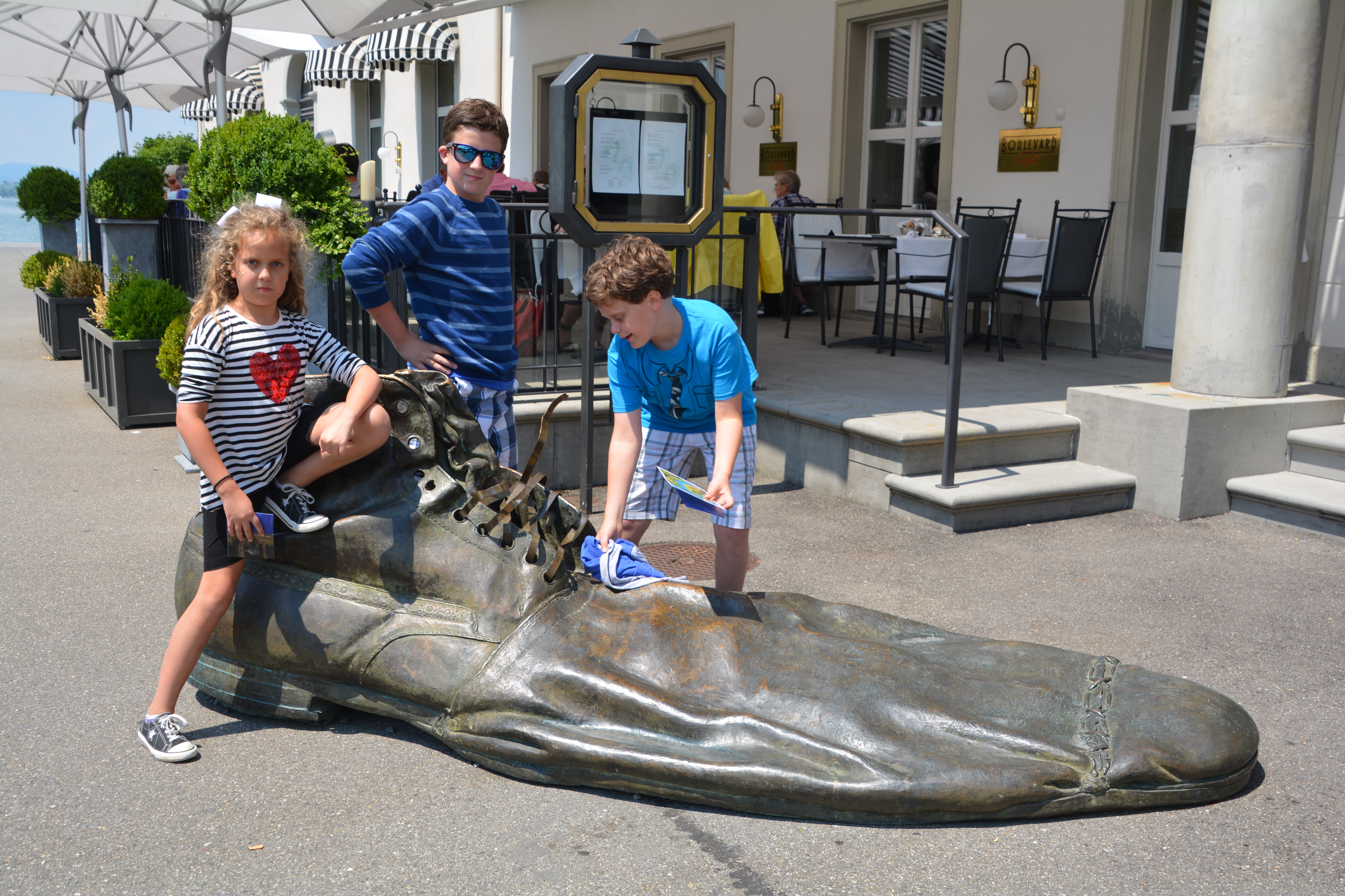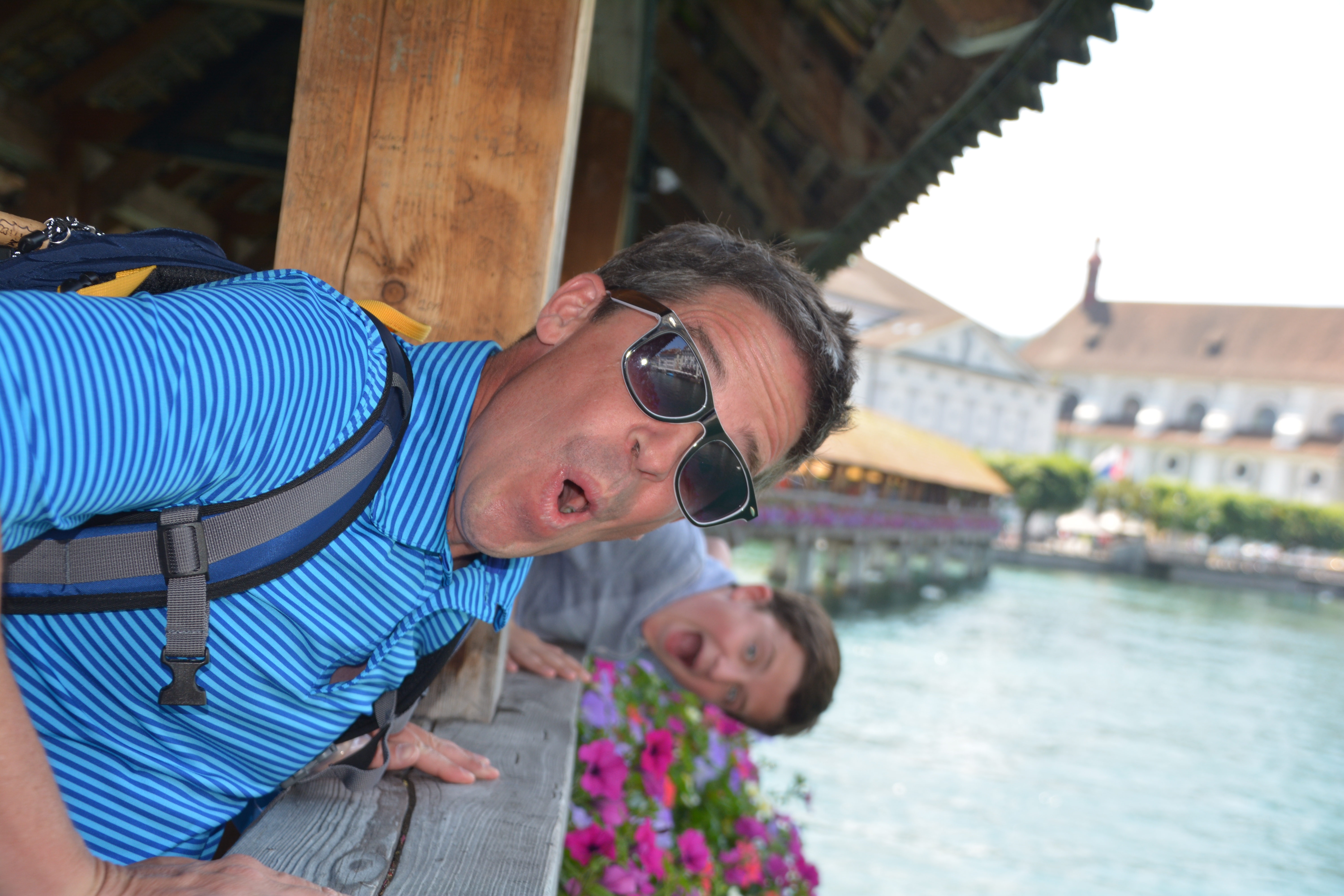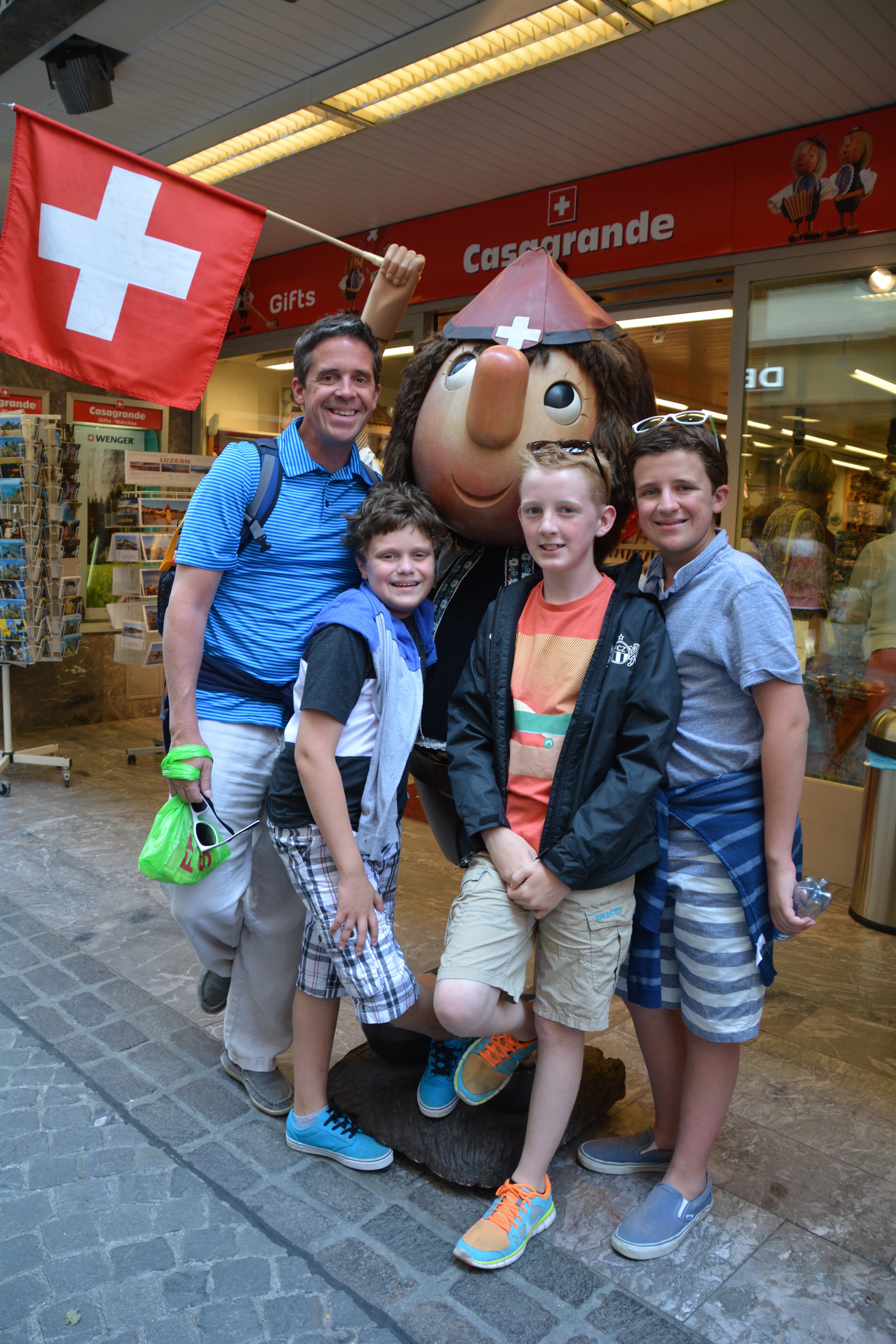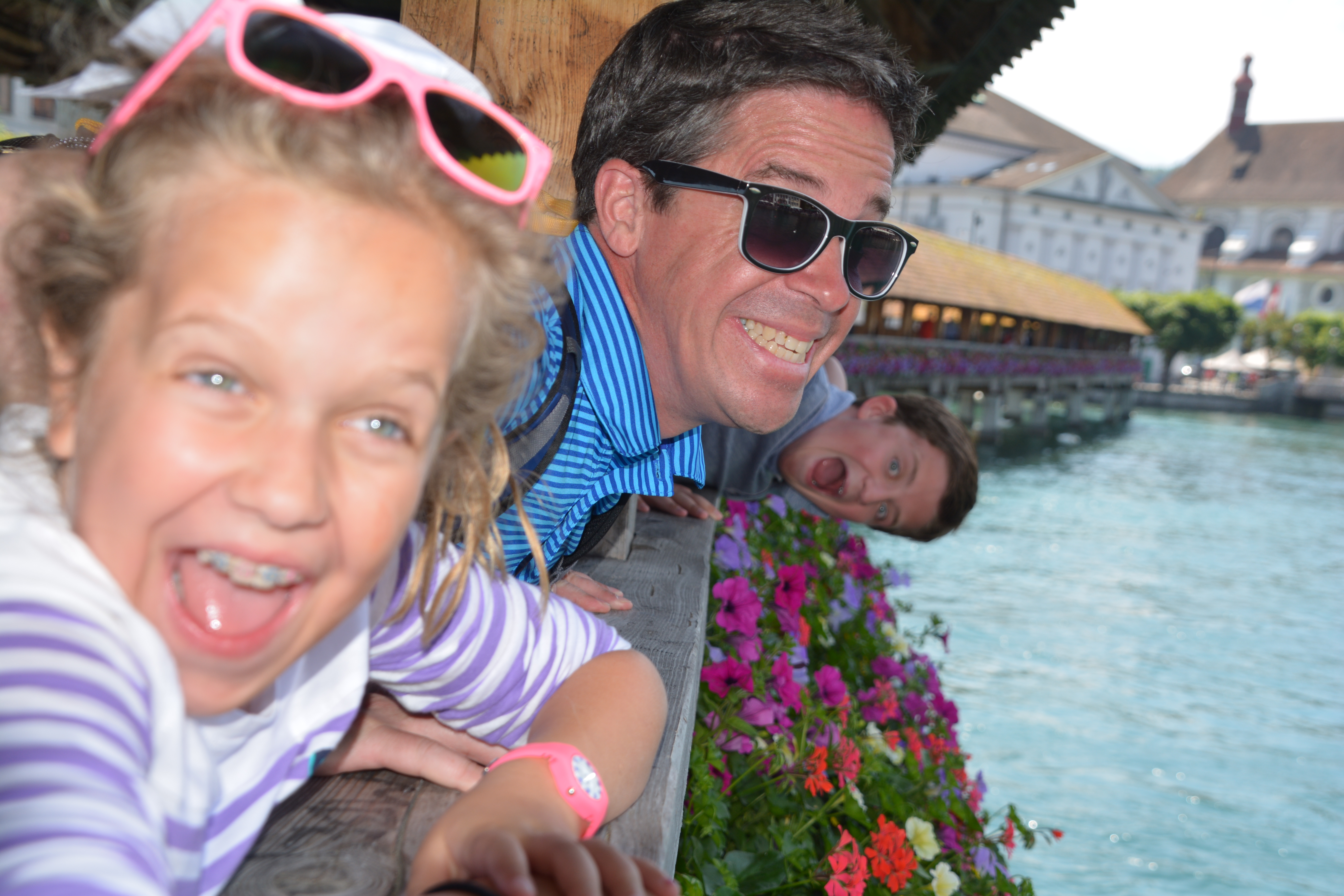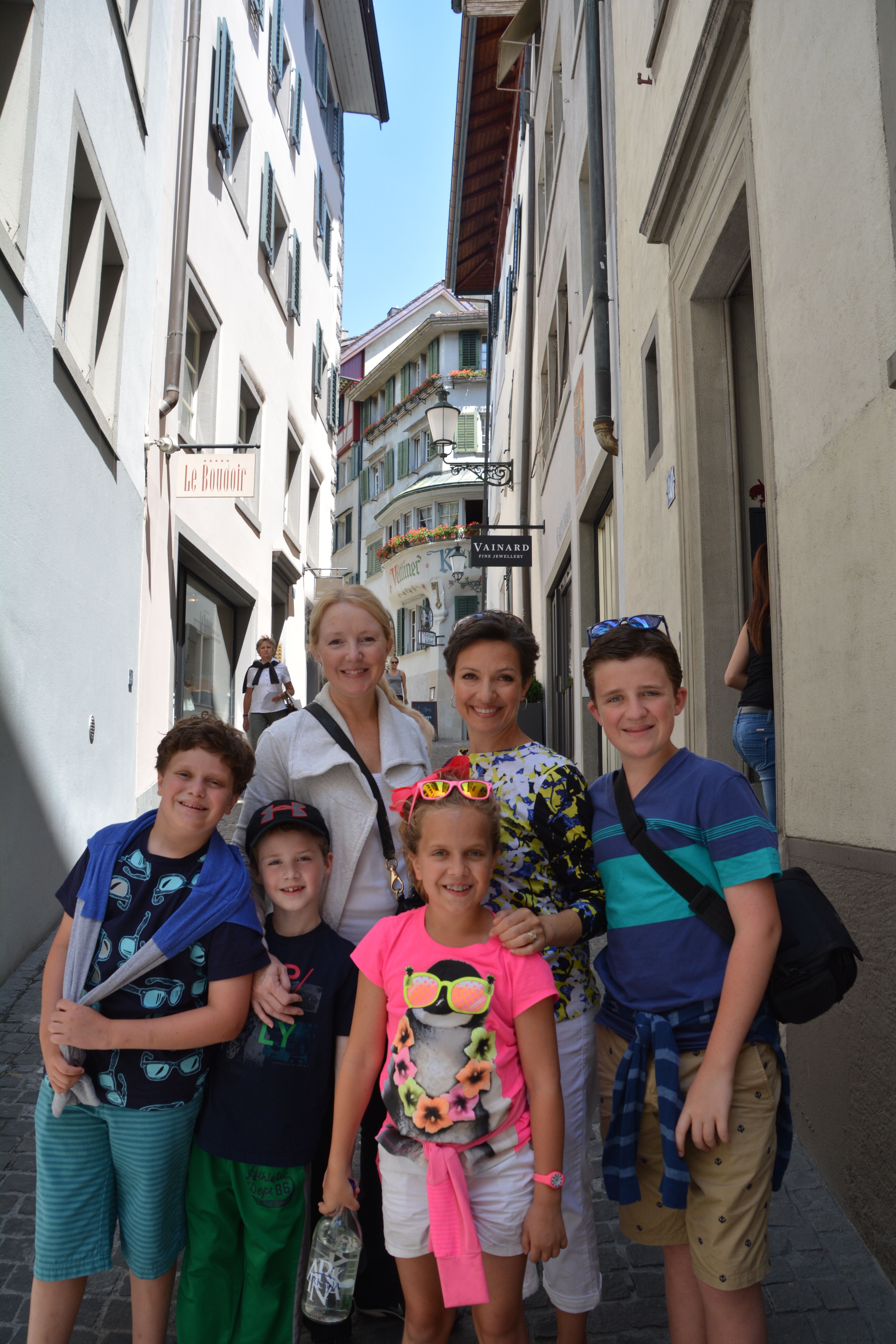 Into old-town Salzburg for a walk before dinner. We found a parking garage for the car and strolled through the narrow streets before ending up in the central “platz”, where we spotted our first Sound of Music landmark – the horse fountain shown in “I Have Confidence”. With photos and the requisite reenactment out of the way, we toddled past Mozart’s birthplace looking for a place for dinner. With a little luck, LouAnn and I found the exact same café we had loved so much 19 years earlier, and we all settled in for a wonderful Austrian dinner of schnitzel, pretzels, and beer. (well, ONE of us had all three) The kids tried fancy, local soft drinks that were served in WINE GLASSES, so they thought that was VERY grown-up. LouAnn and I grinned at each other all evening, soaking in the nostalgia of our 19-year return.