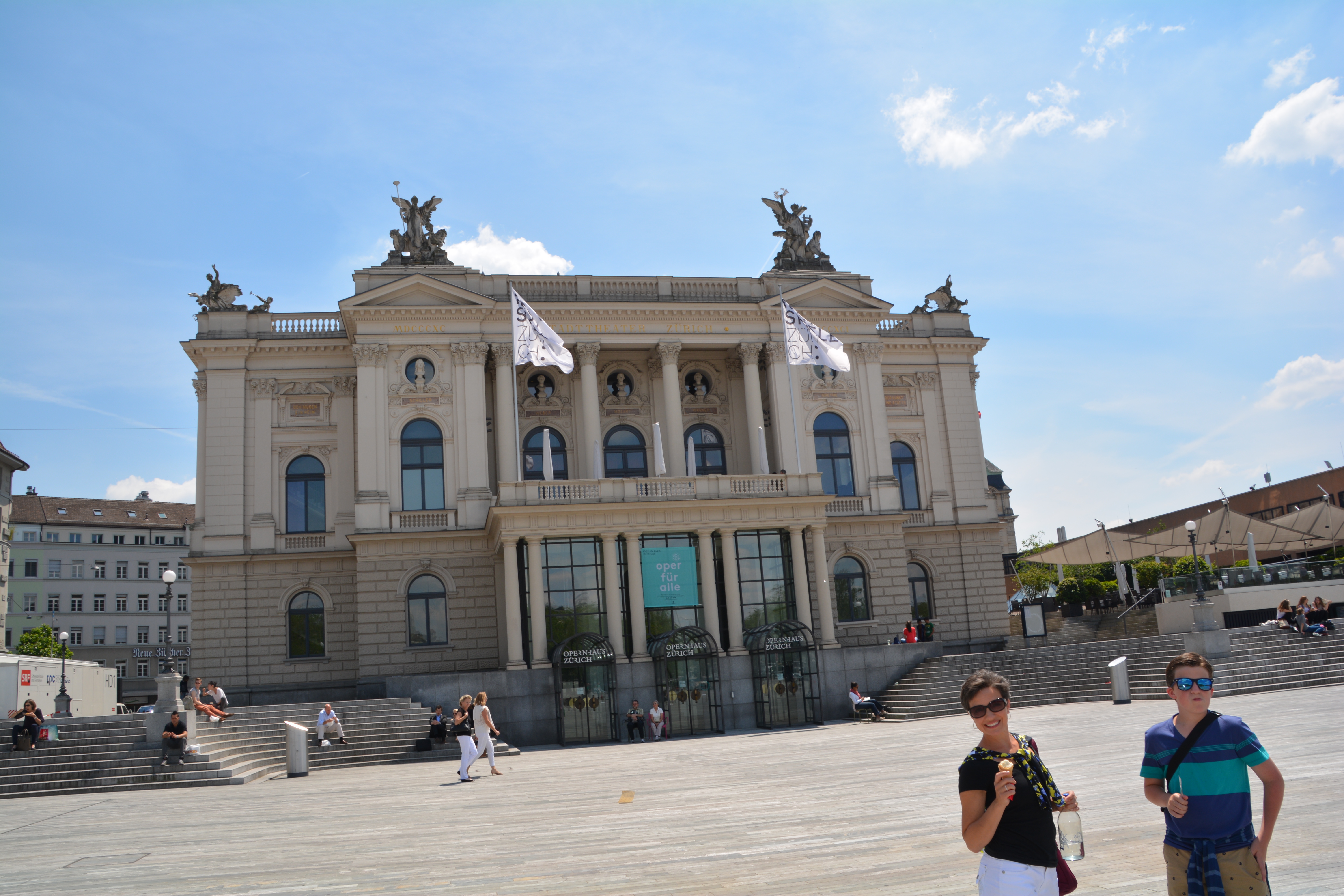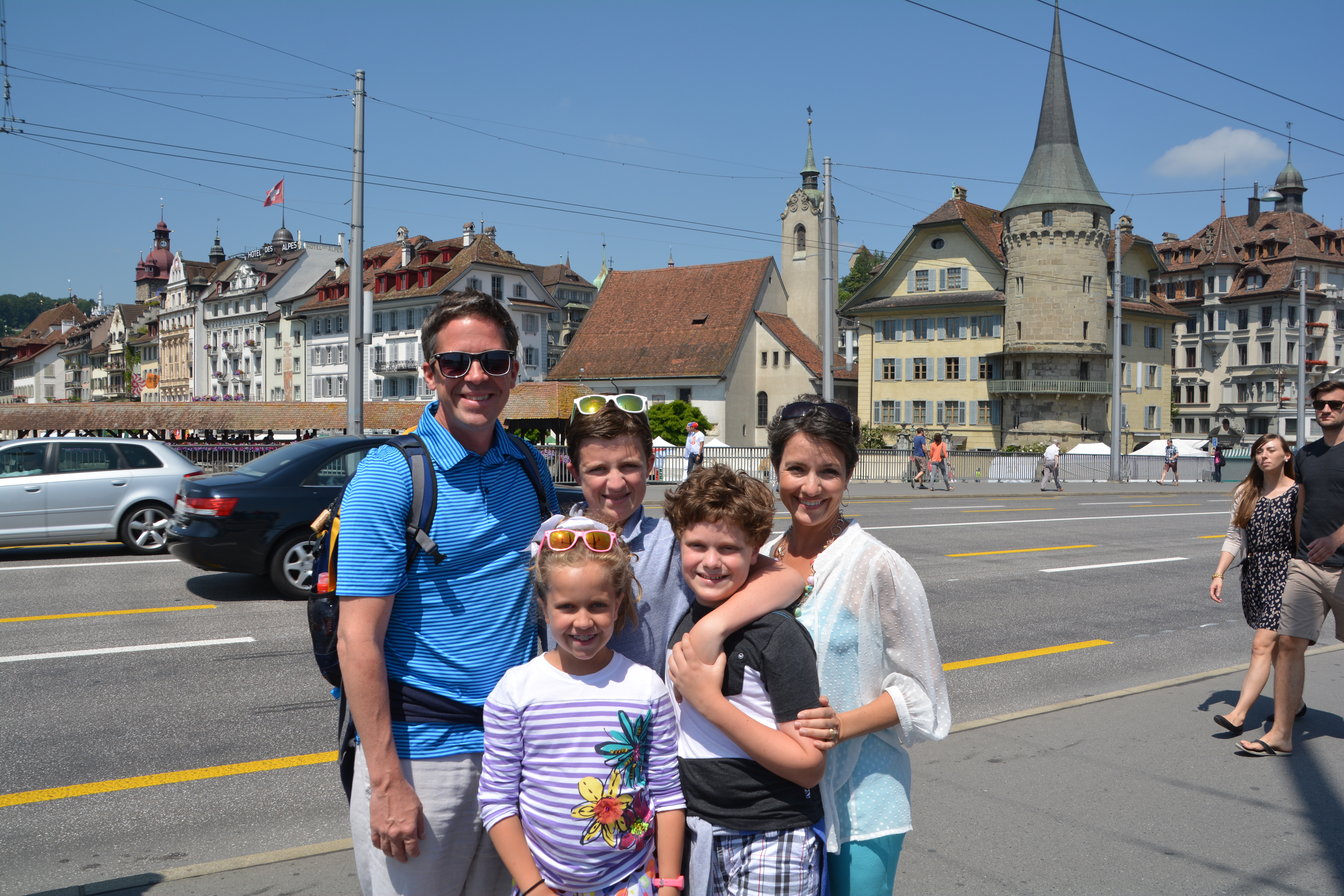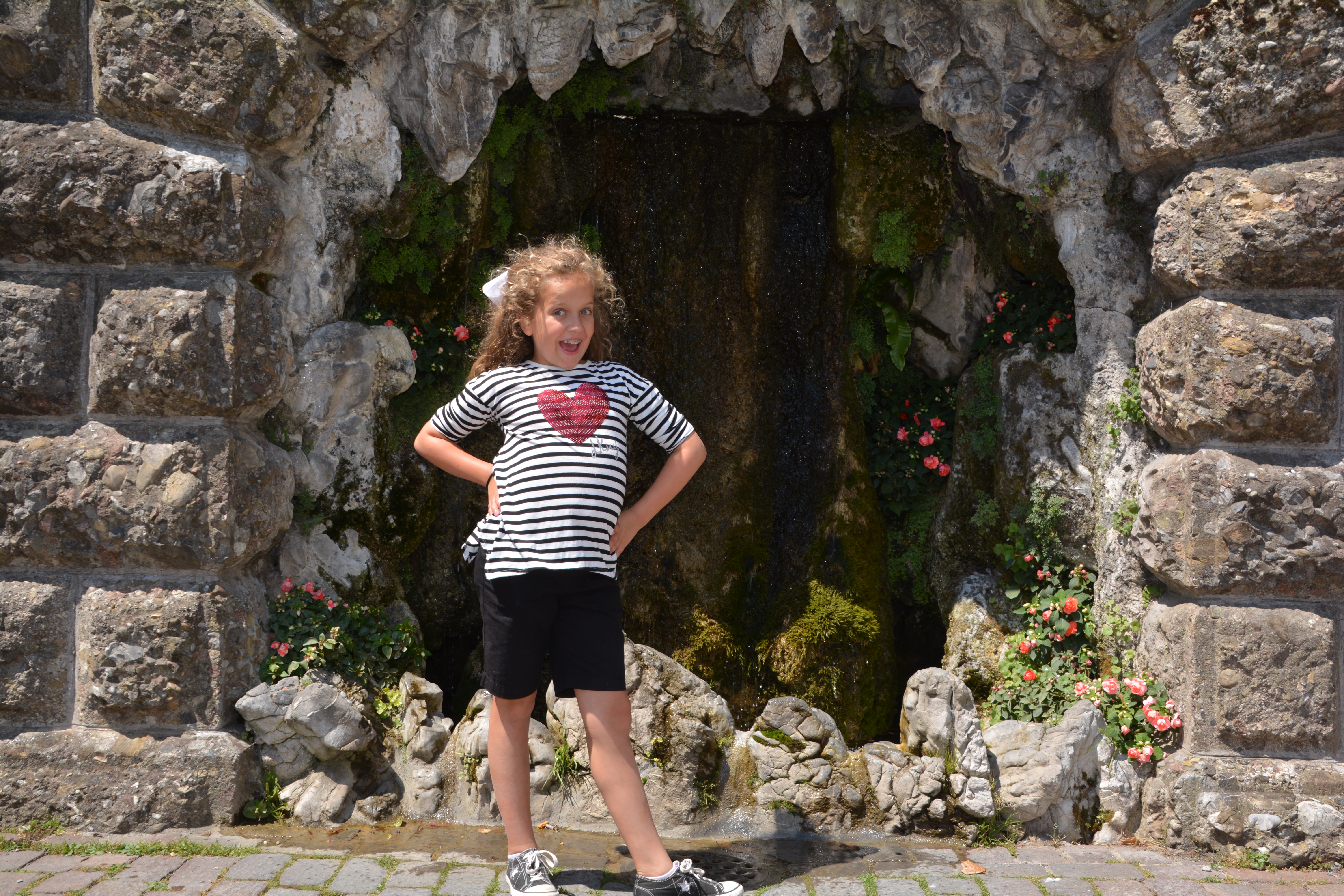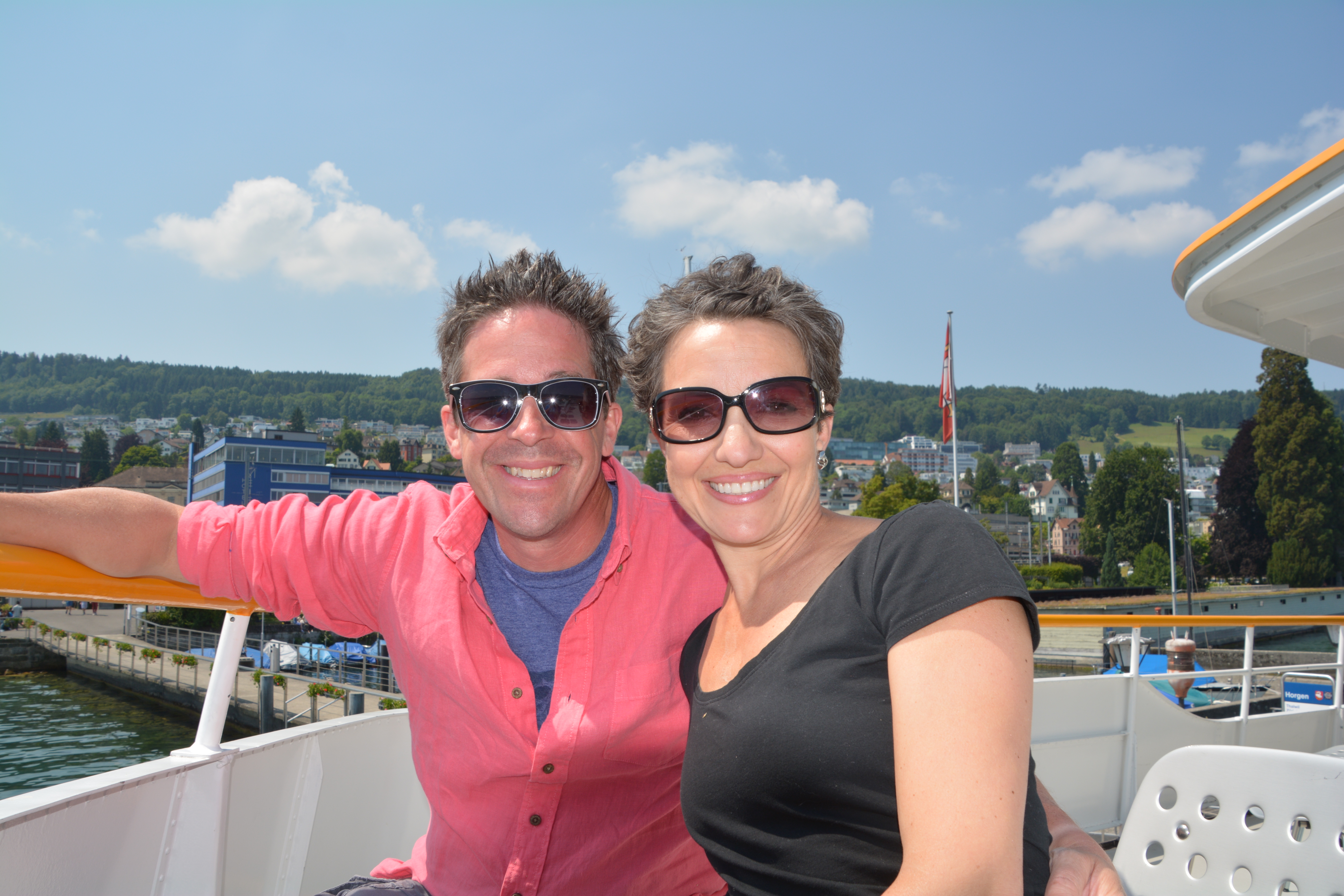 Into old-town Salzburg for a walk before dinner. We found a parking garage for the car and strolled through the narrow streets before ending up in the central “platz”, where we spotted our first Sound of Music landmark – the horse fountain shown in “I Have Confidence”. With photos and the requisite reenactment out of the way, we toddled past Mozart’s birthplace looking for a place for dinner. With a little luck, LouAnn and I found the exact same café we had loved so much 19 years earlier, and we all settled in for a wonderful Austrian dinner of schnitzel, pretzels, and beer. (well, ONE of us had all three) The kids tried fancy, local soft drinks that were served in WINE GLASSES, so they thought that was VERY grown-up. LouAnn and I grinned at each other all evening, soaking in the nostalgia of our 19-year return.