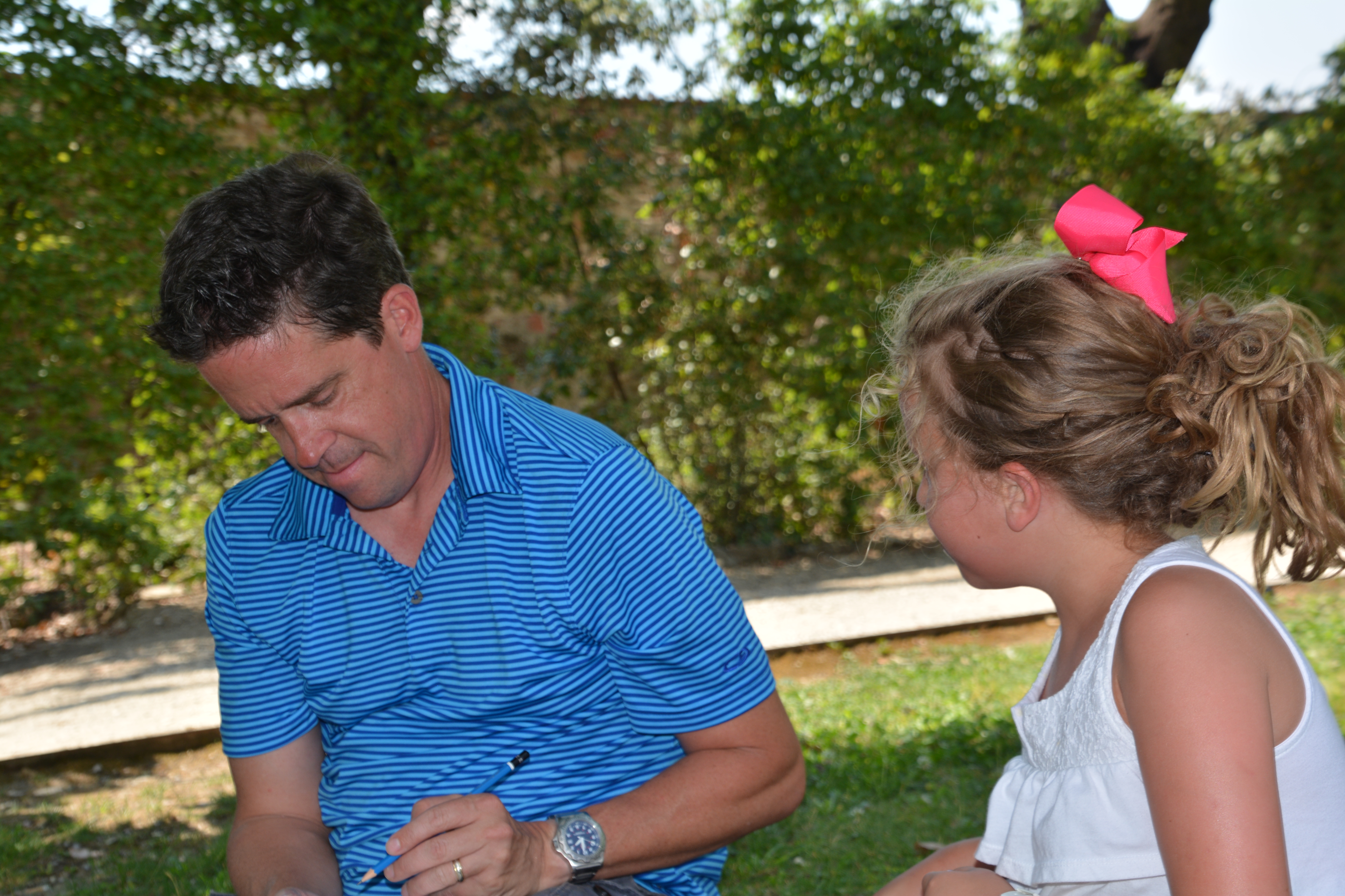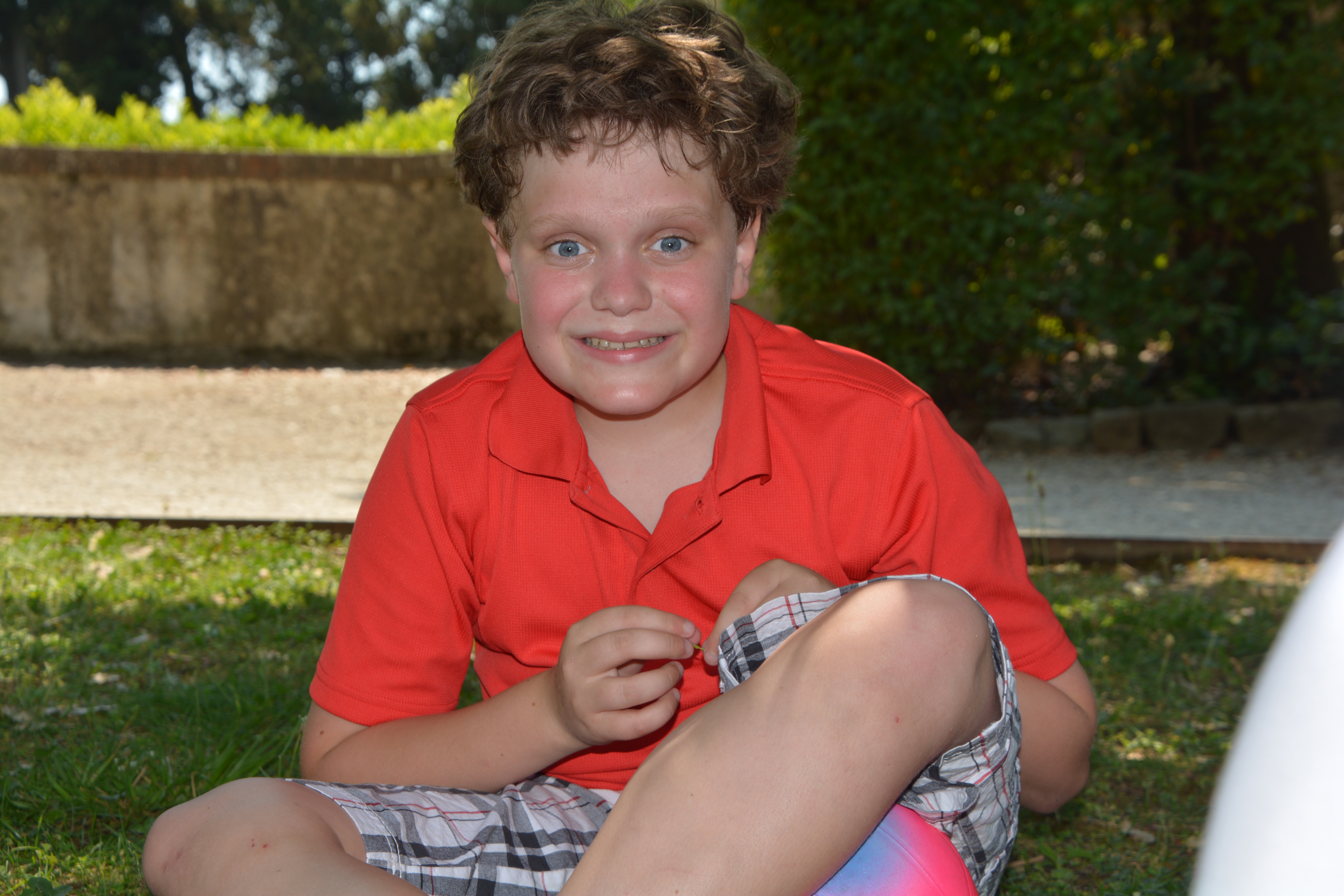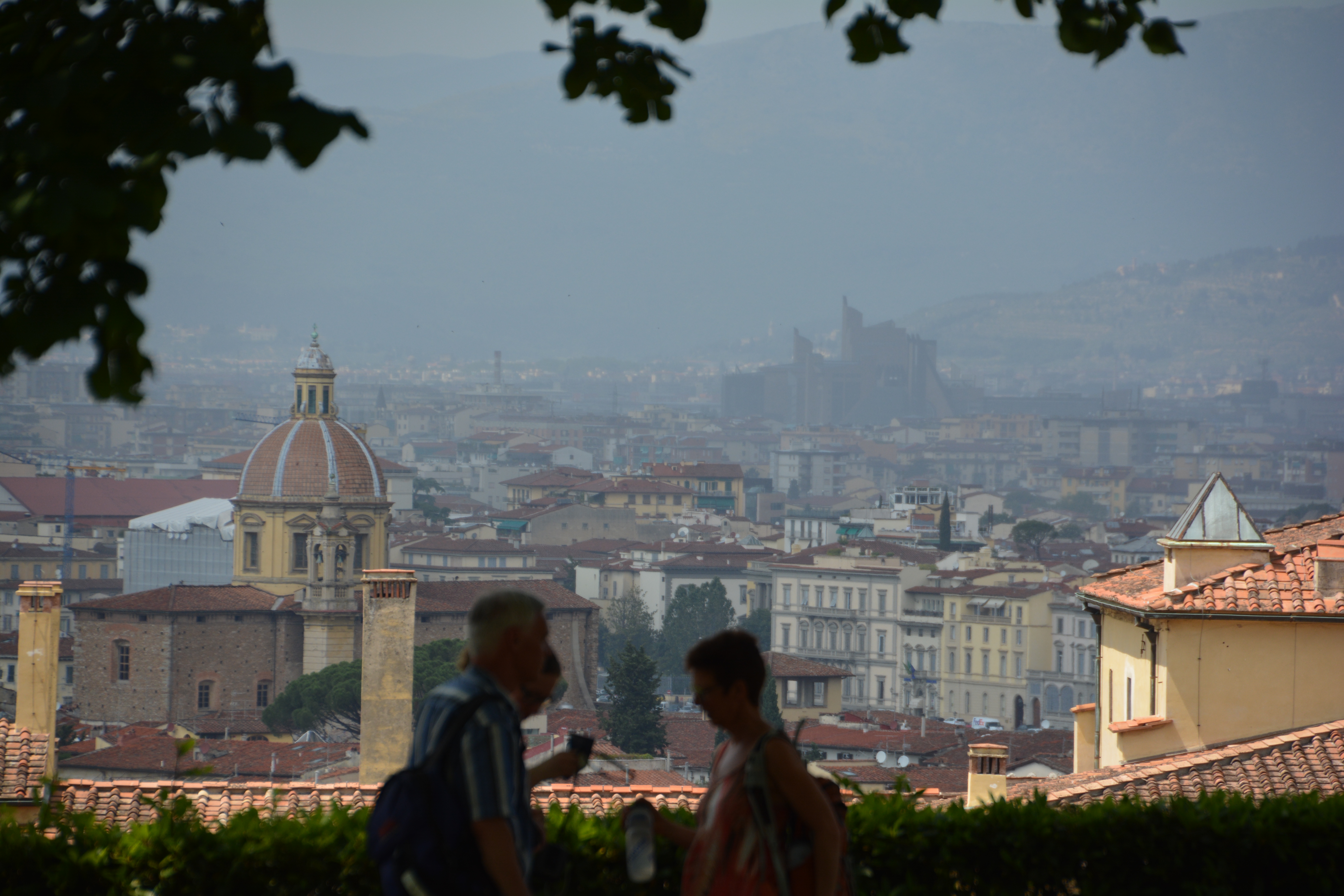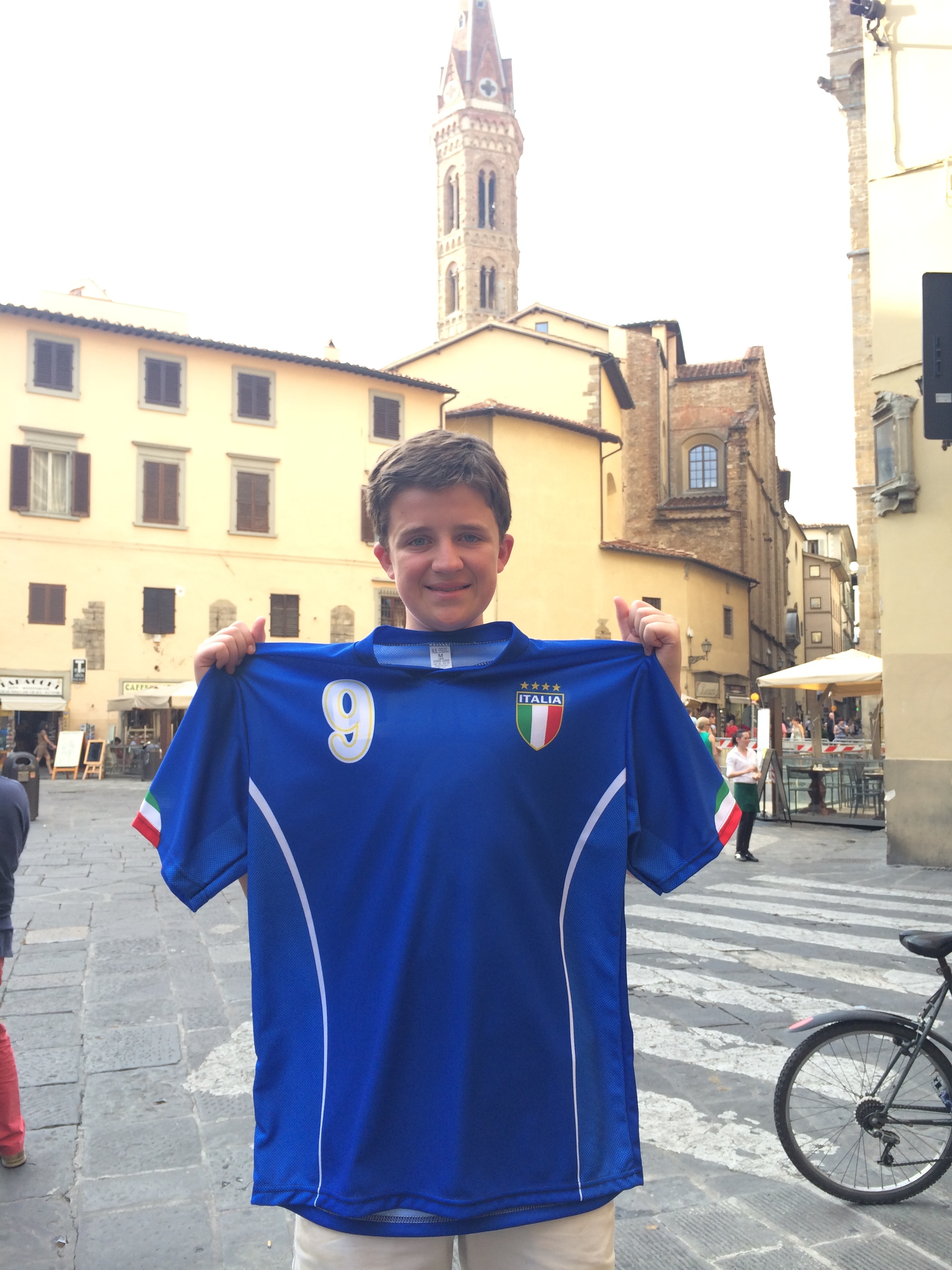 Like every morning, not up-and-at-‘em as early as we wanted… felt so good to sleep in. Headed to Florence again for Day 2. After parking in our Garage of Shame, we walked to a local market for some picnic supplies, then made our way to Boboli Gardens, again (remember, we showed up after closing time yesterday), for a fun lunch. It was a blisteringly hot walk up to the perfect picnic spot, and we were all thankful to gather in the shade. The Boboli Gardens belonged to the Medici family during the Renaissance, and were only available and open to the Royal family. They are HUGE! They are built up on a hill overlooking Florence – this had never been done before. There was no water supply up that high, so they had to build an elaborate system to pipe water up from the Arno River. Gorgeous statues, fountains, mazey walks through manicured hedges and beautiful overlooks. We played a mean game of “Boboli Ball” with our best purchase on the trip so far: in Rome we bought a very brightly striped, cheap play ball. He has become our “Wilson” – our constant companion. He has provided hours of entertainment for us all.