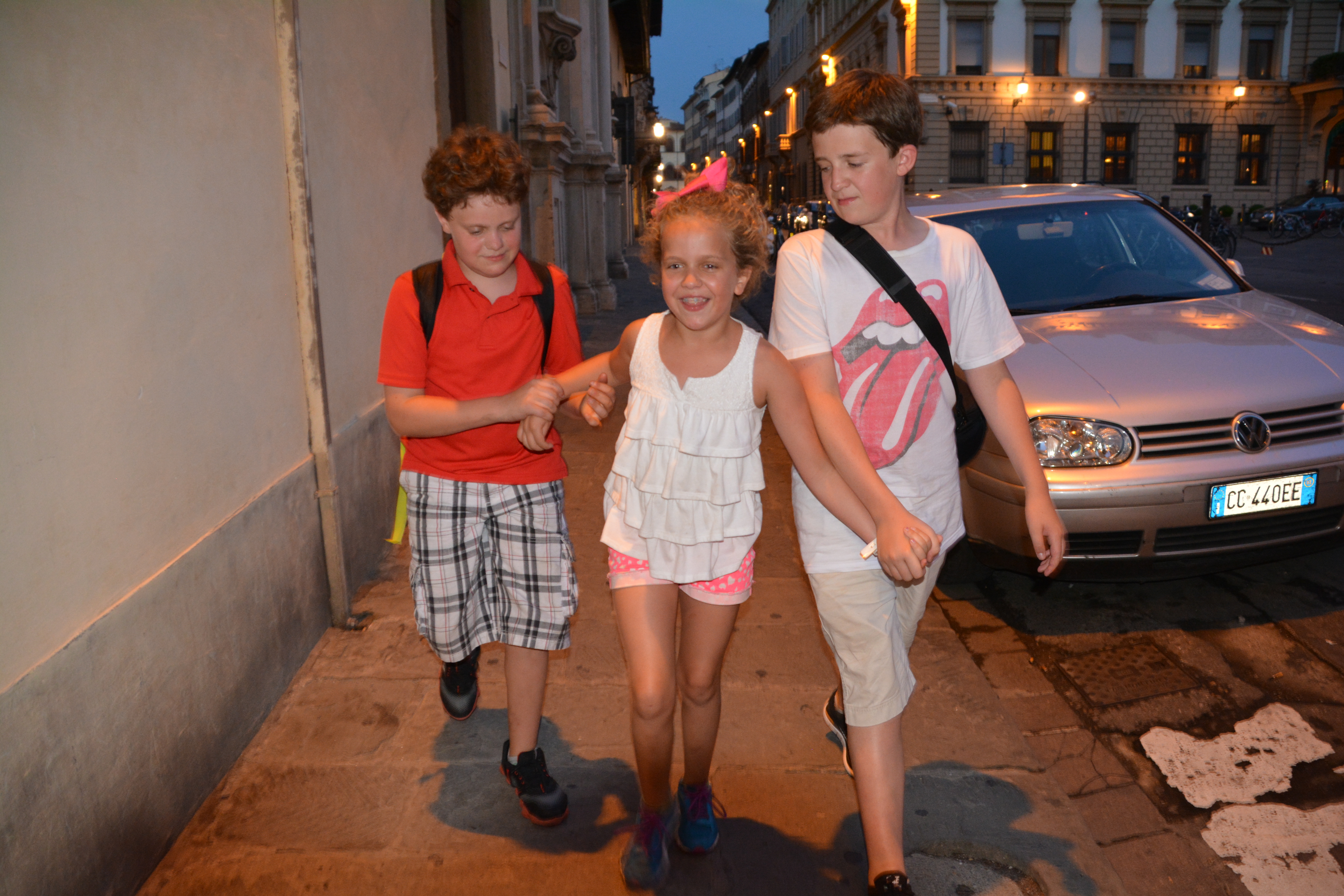 The rain had passed by the time we spilled back out onto the street, and we were craving Yellow Bar. But the Italians don’t let you eat dinner before 6:30! So we sat on some church steps and people-watched until the appointed opening hour for the restaurants. After the Yellow Bar, MORE GELATO, of course. The villa was calling, but we had to drag LouAnn kicking and screaming back to the car; she didn’t want to leave any Florentine streets unexplored. Late night, but full day.
