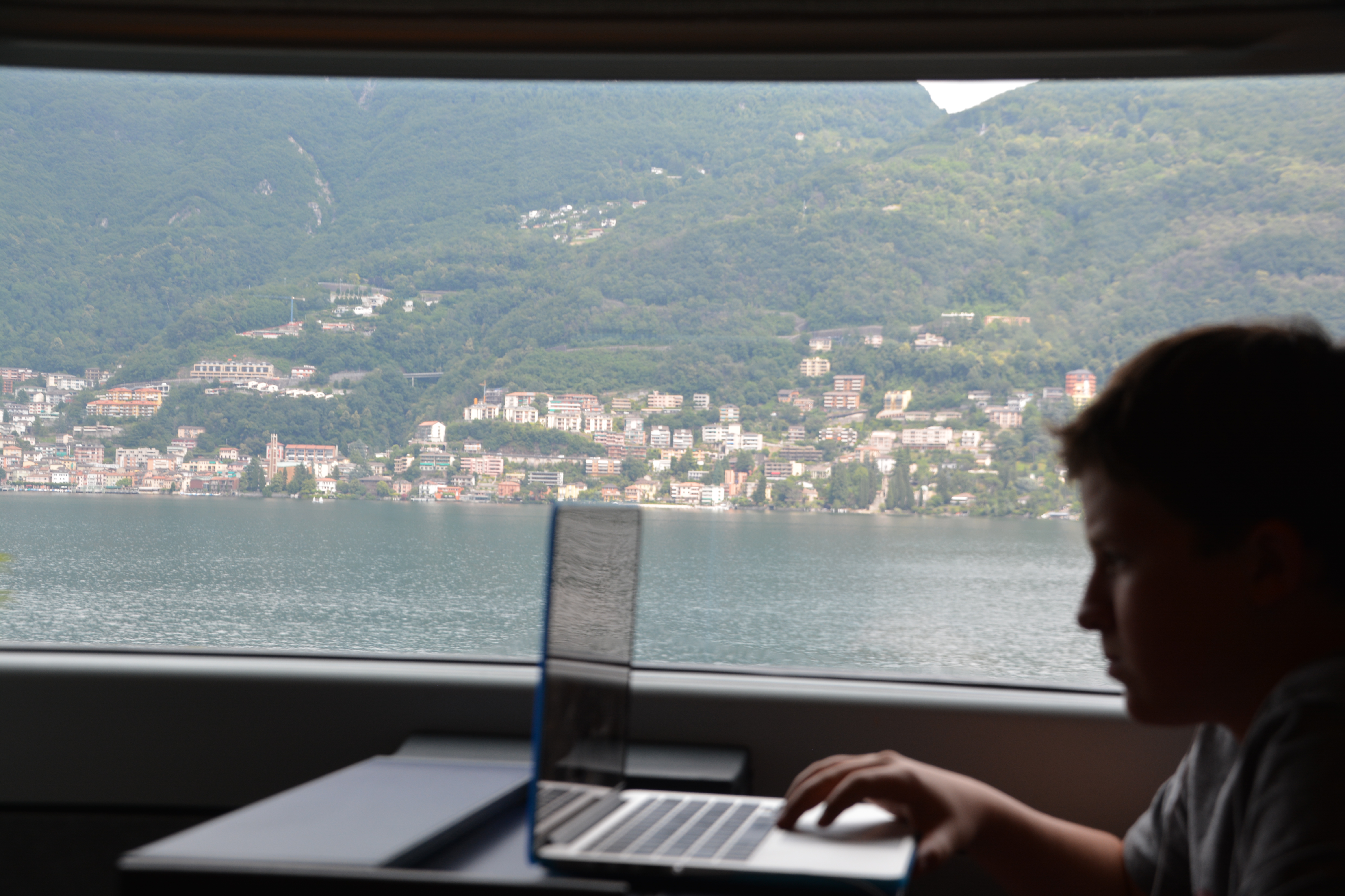Up not-too-early to pack up and catch a very reasonably-scheduled 10:50am train. First train from Venice to Milan, second train from Milan to Zurich. The competitive jostling for on-train giant-suitcase space is not for the faint-of-heart. Yet the airline person in me is amazed that there always seems to be enough room, even with some bags stuffed between seats or plainly sitting out in aisles. That would never fly on an airline! Ha! Pun! Made the connection with no problems, and the views out the windows between Milan and Zurich were stunning. We threaded through the Lake Como district and then Lugano. Gorgeous lakes whose shores were dotted with picturesque villages – all straight off of a postcard. What a dramatic and appropriate transition from the Italian countryside portion of our adventure to the mountains; from pasta, pizza, and piazzas to schnitzel, strudel, and strasses.