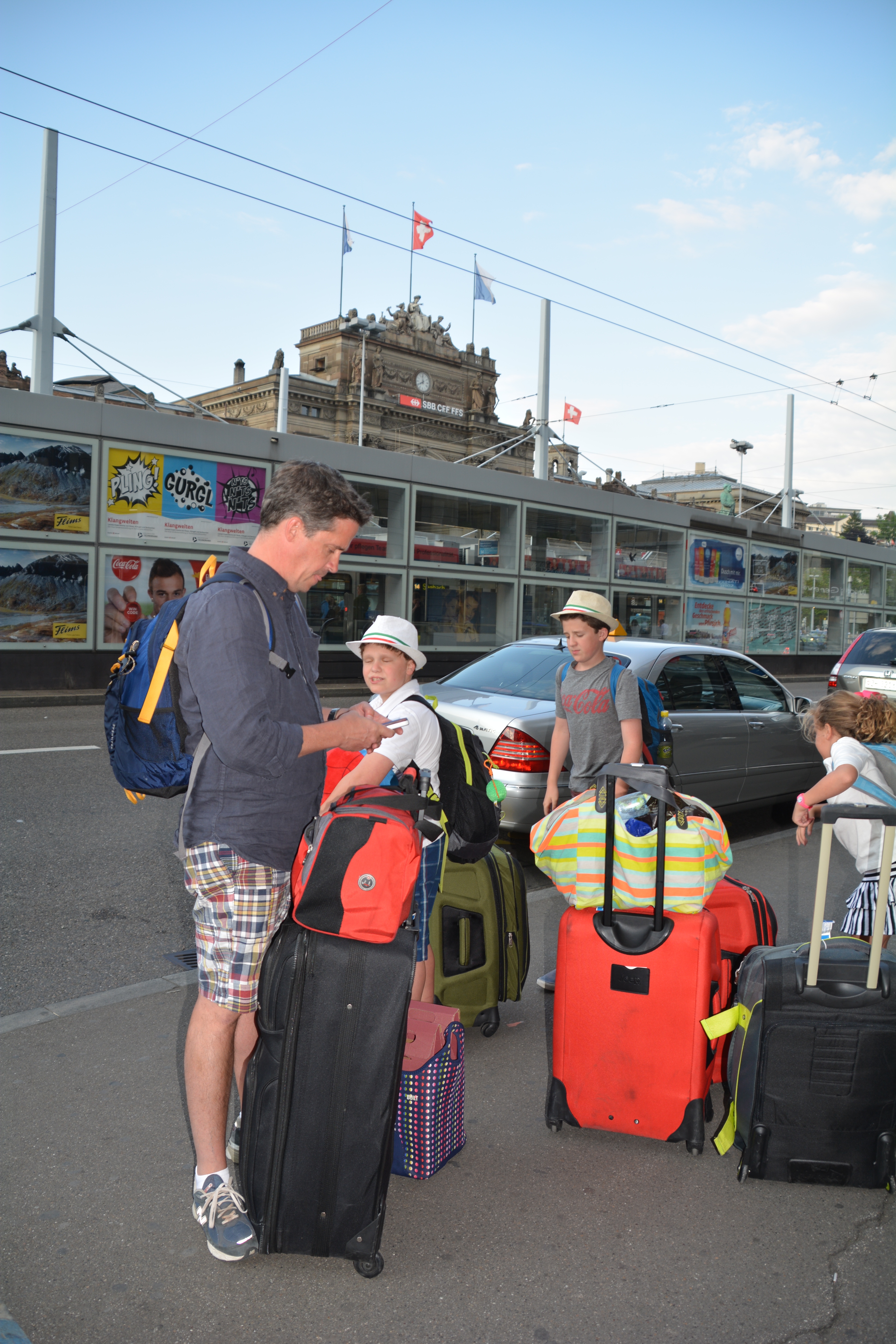 Outside the Zurich station. Trying to find Tram #6 towards the zoo!