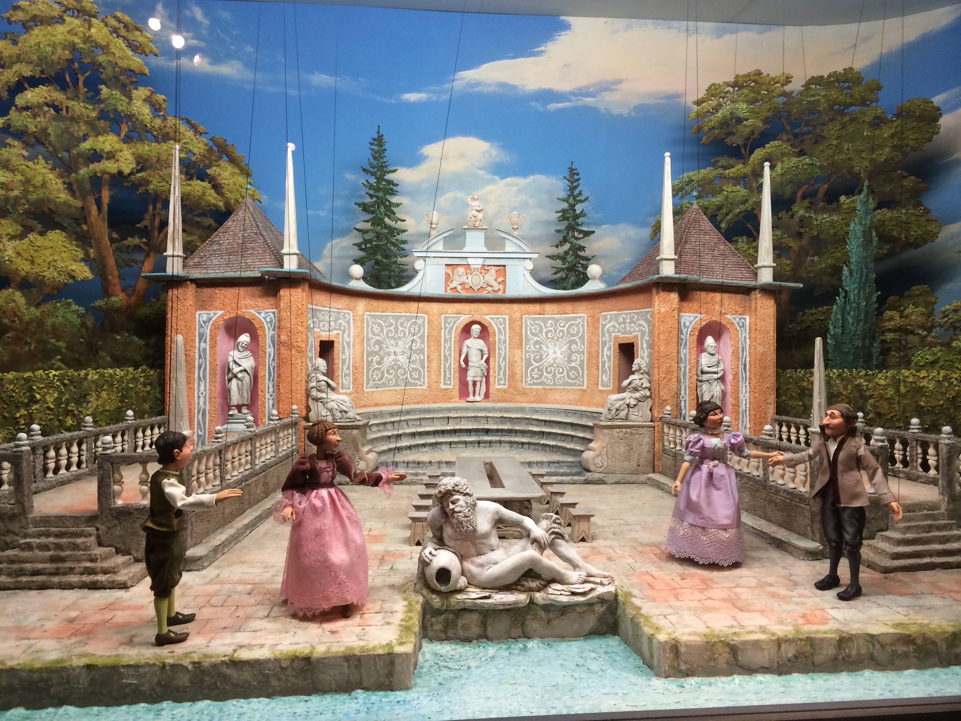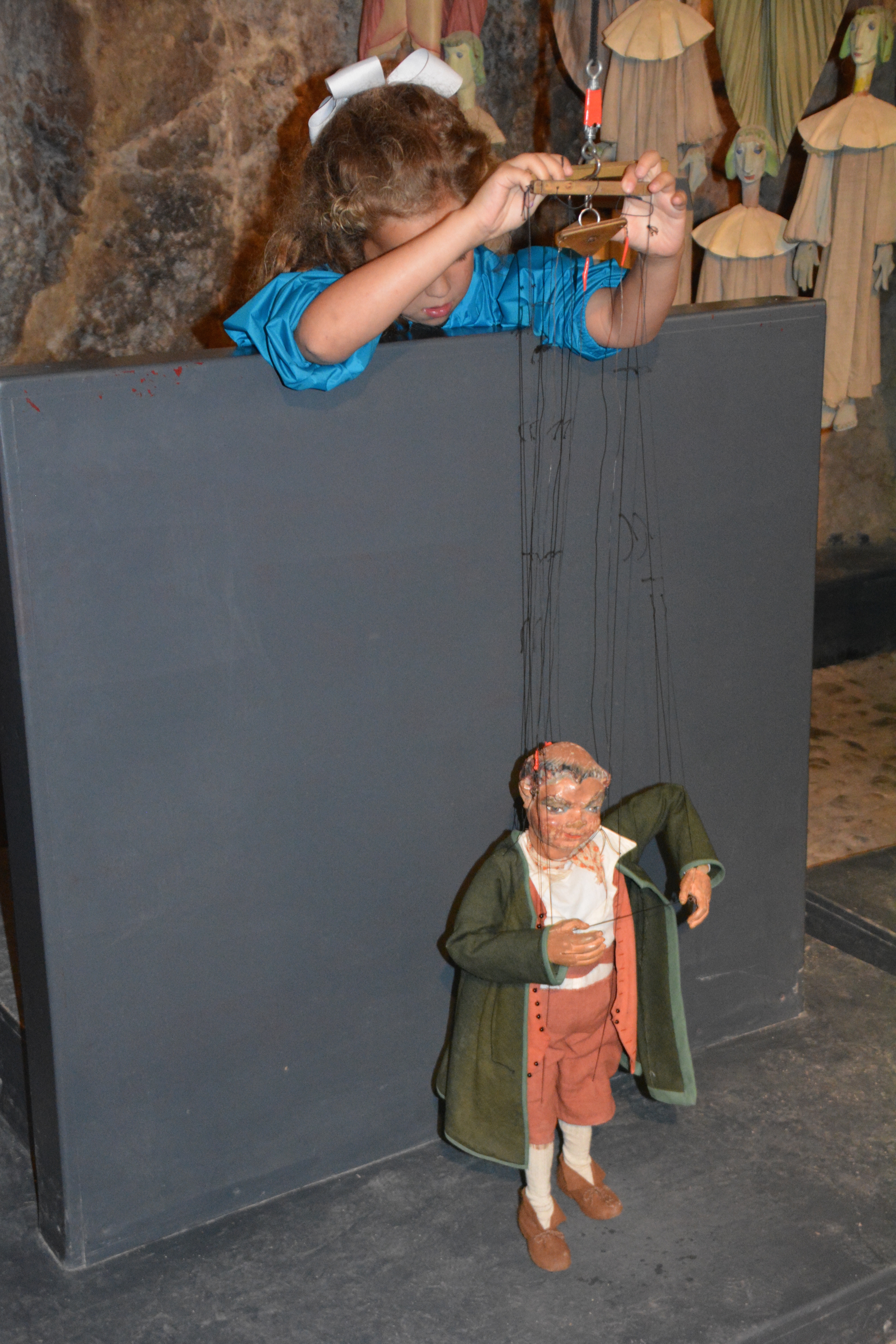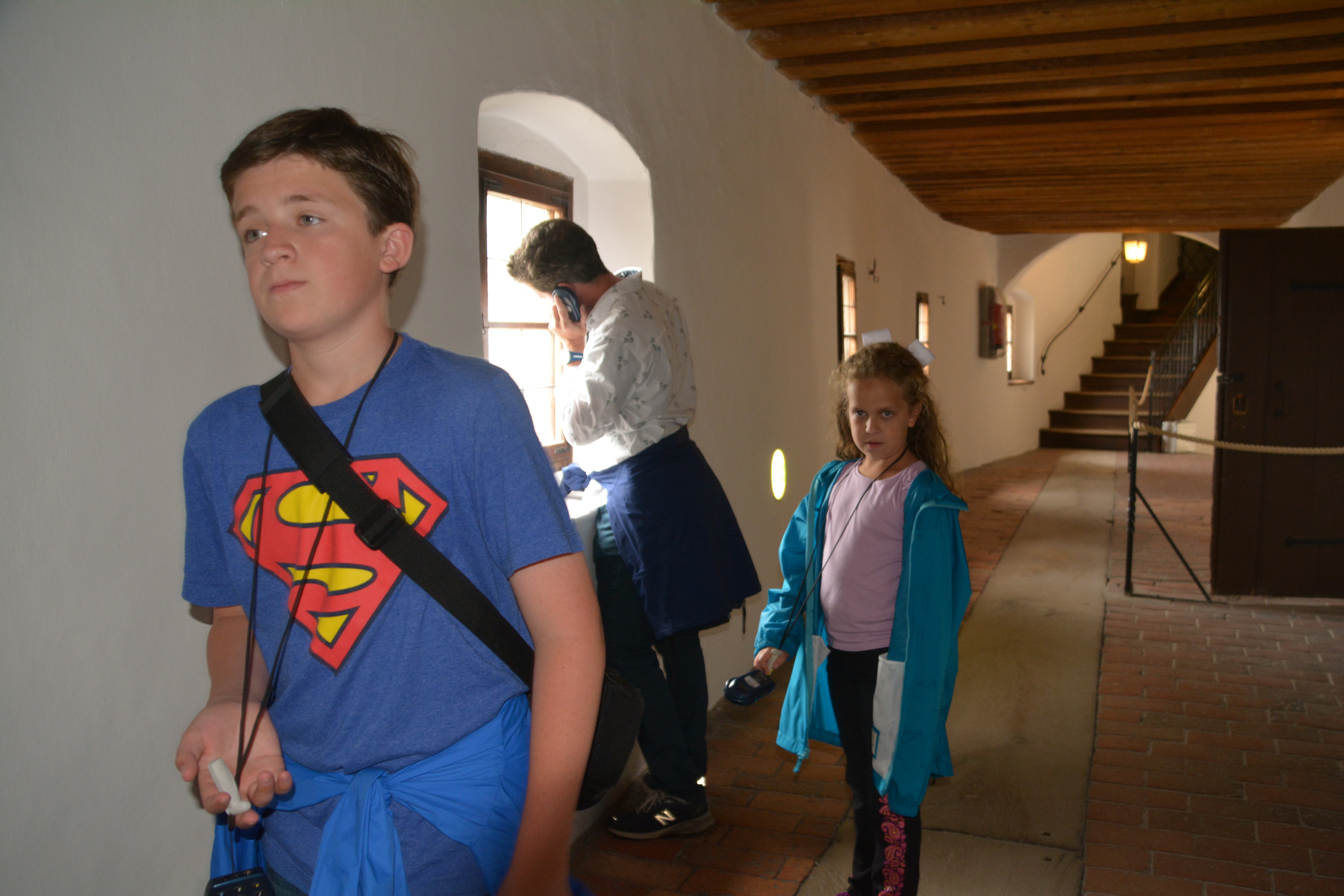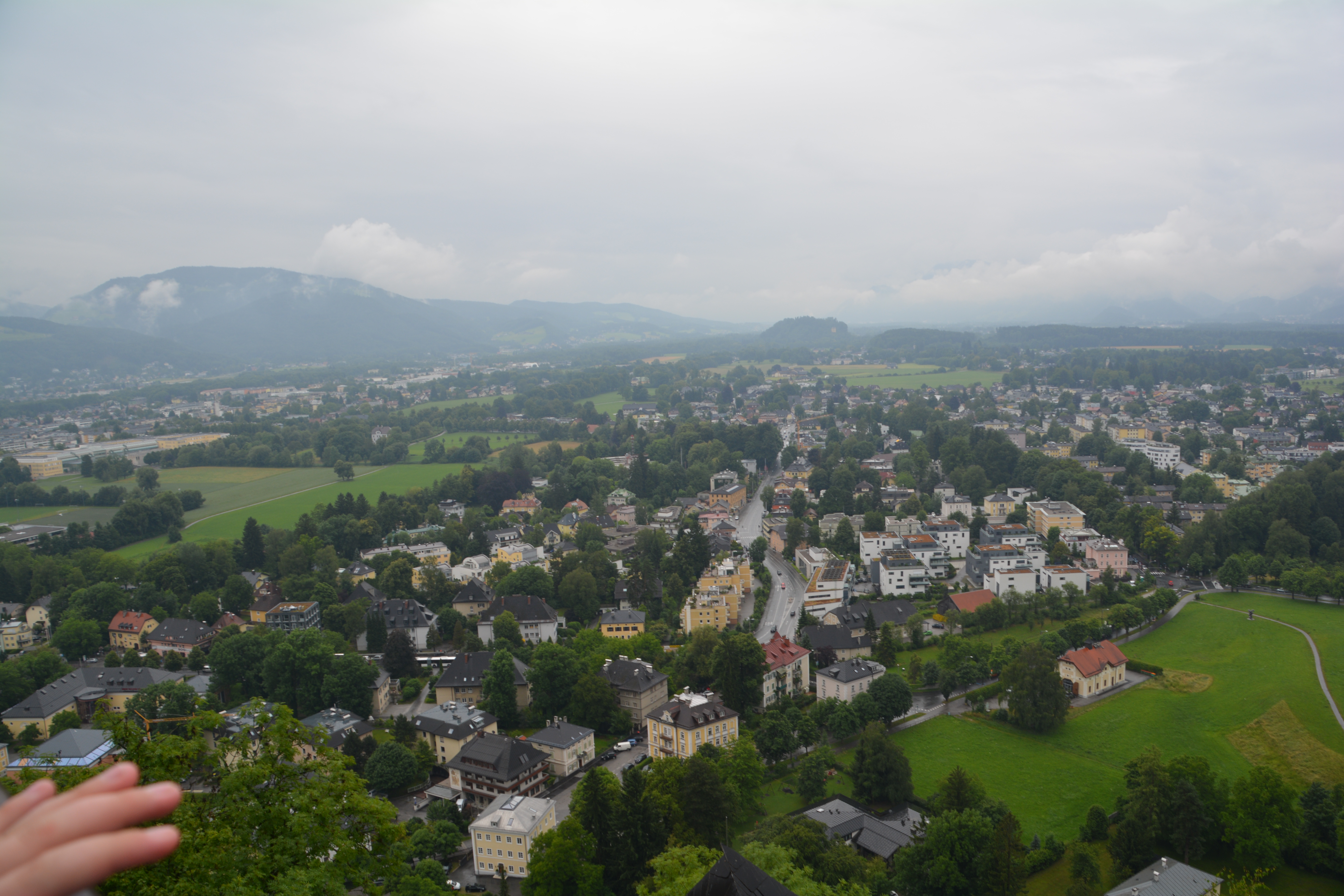 As usual, we got the audio tour – of the inner rooms, king’s residence, torture chamber, etc. The fortress was begun in the early Roman times, then in the 1100’s the early structure was built and improved upon throughout the next few centuries. The last fortification was in the 1500’s. We walked to the highest tower & had a beautiful 360-degree view of Salzburg. The kids were wide-eyed in the torture chamber, which, Mr. Audioguide told us, was NOT the torture chamber after all, just a holding room for prisoners. For now, it just HELD the torture devices they used. Still pretty neat. Paul made us take the obligatory “arms-in-chains-like-a-prisoner” picture before we left. We wandered the grounds and stumbled upon a Marionette Museum – many of which had been used in the Saltzburg Marionette Theatre. Saw lots of original marionettes from the early century. Beautifully crafted characters from operas, mostly. Videos about how they made them, demonstrations, and even one you could play with and dance around. Perfect to see since we are going to see Mozart’s “The Magic Flute” at the Marionette Theatre tomorrow night!