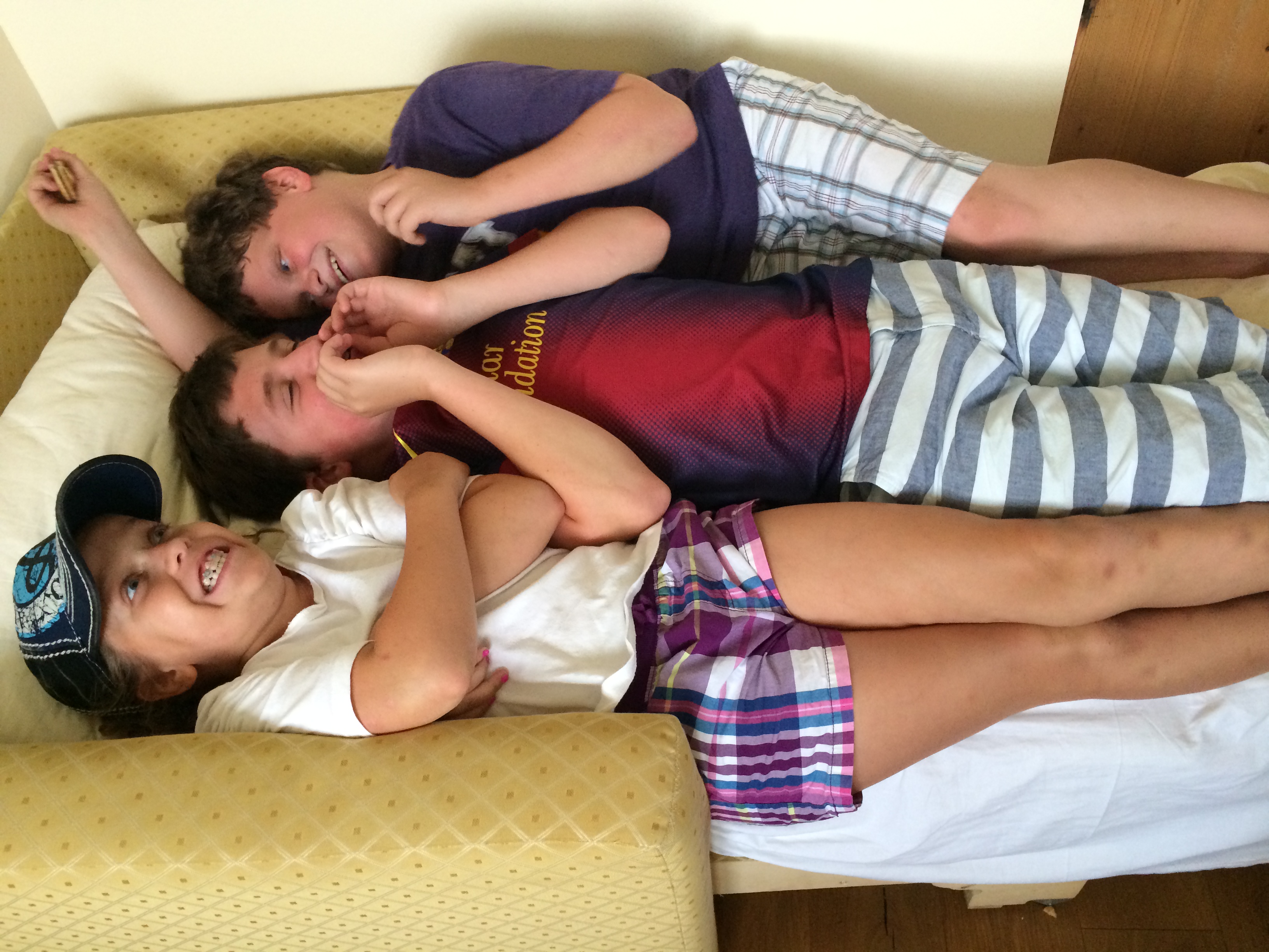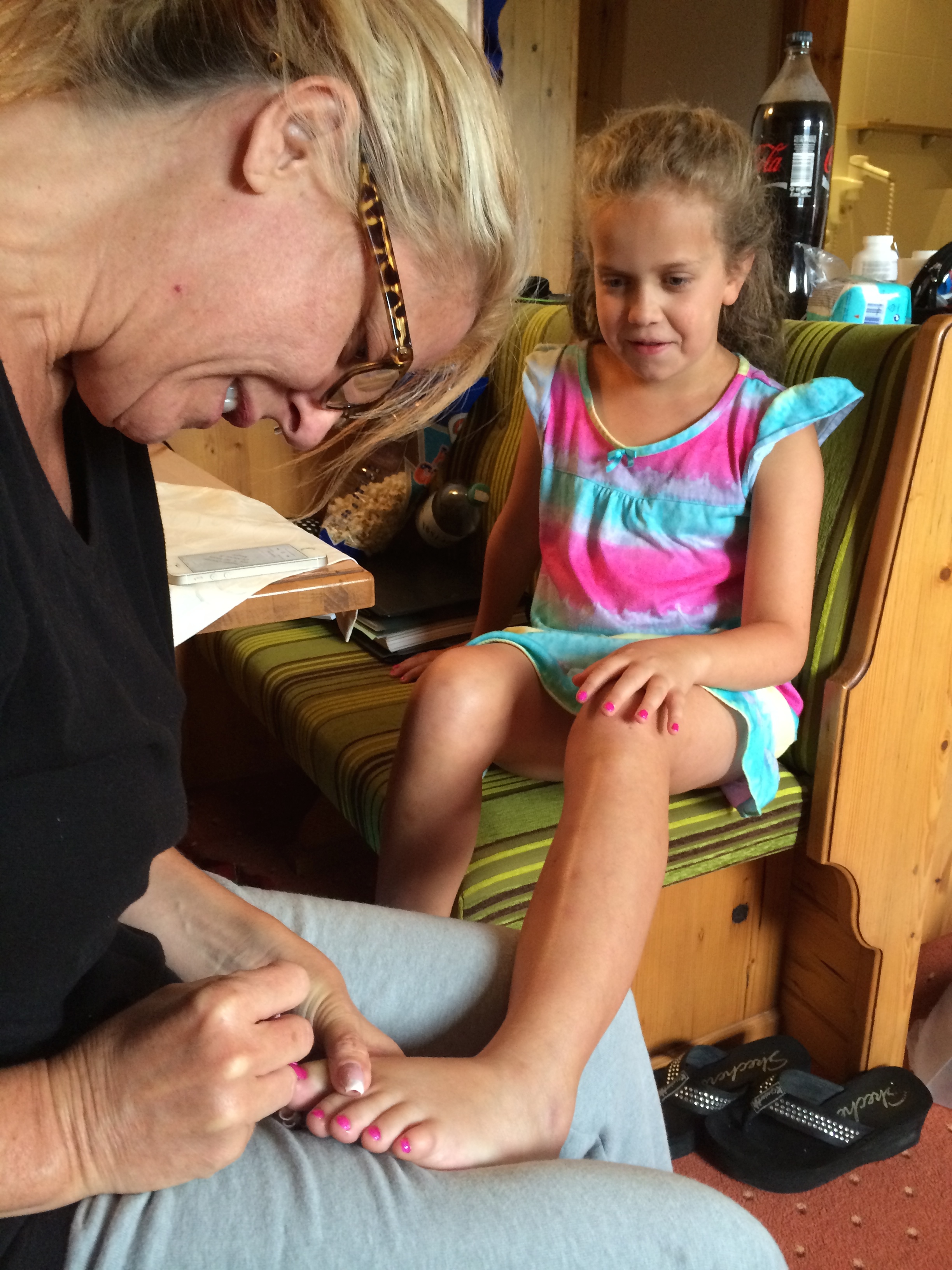 When we’re tired, and punchy, THIS is what we do for entertainment. In case you can’t identify the feet…. Georgia on the left, LouAnn in the middle, Ellis on the right.