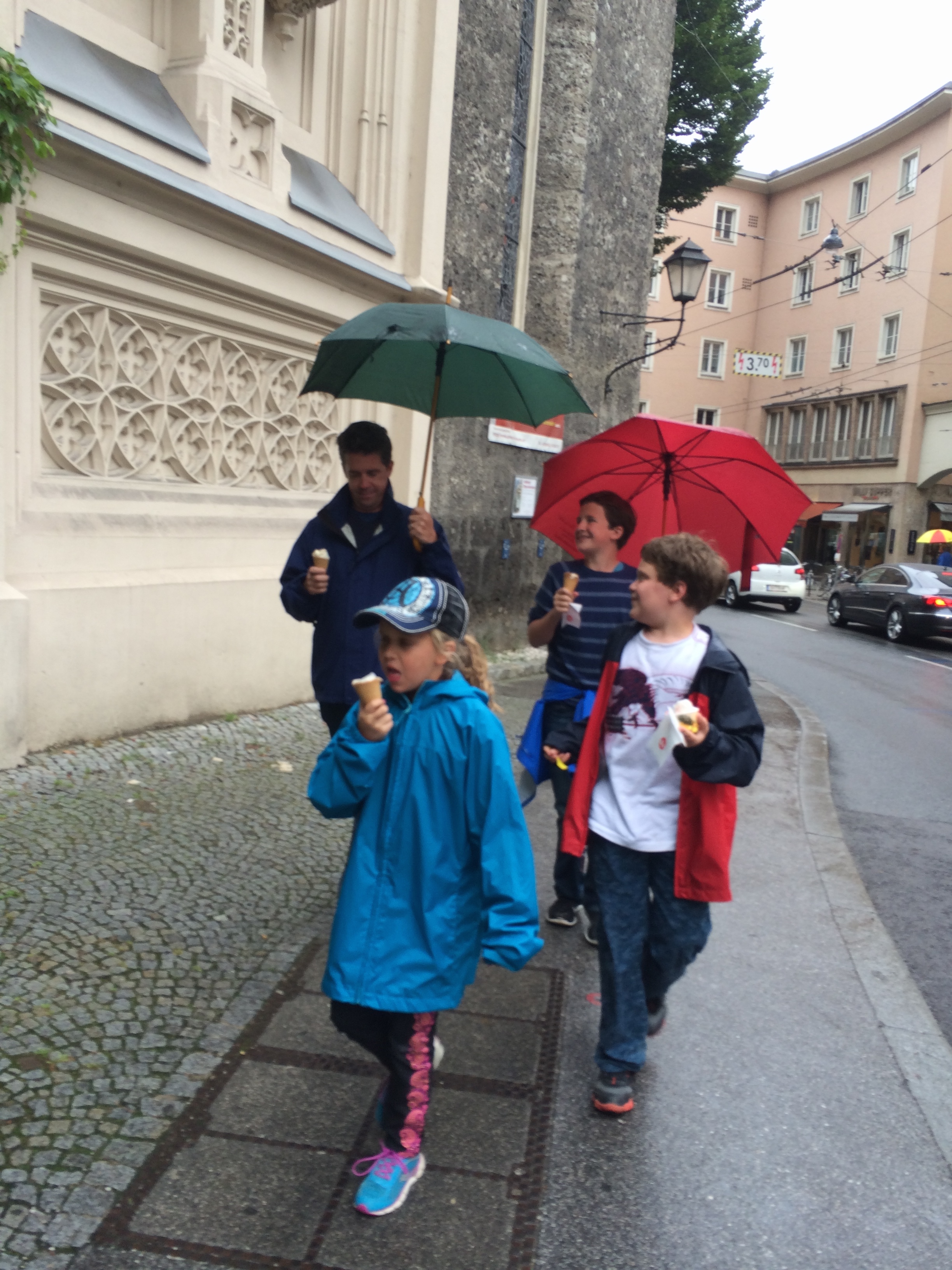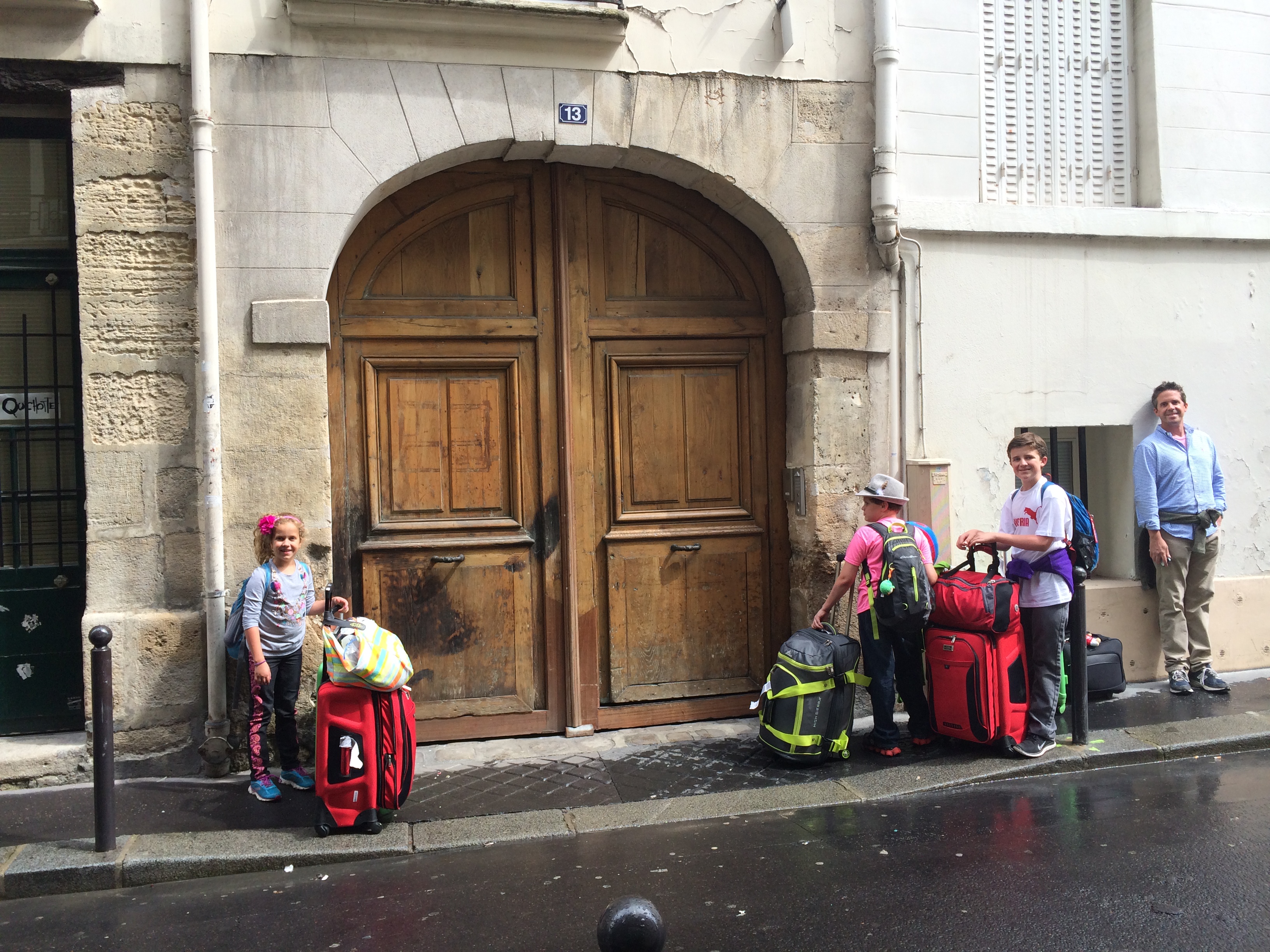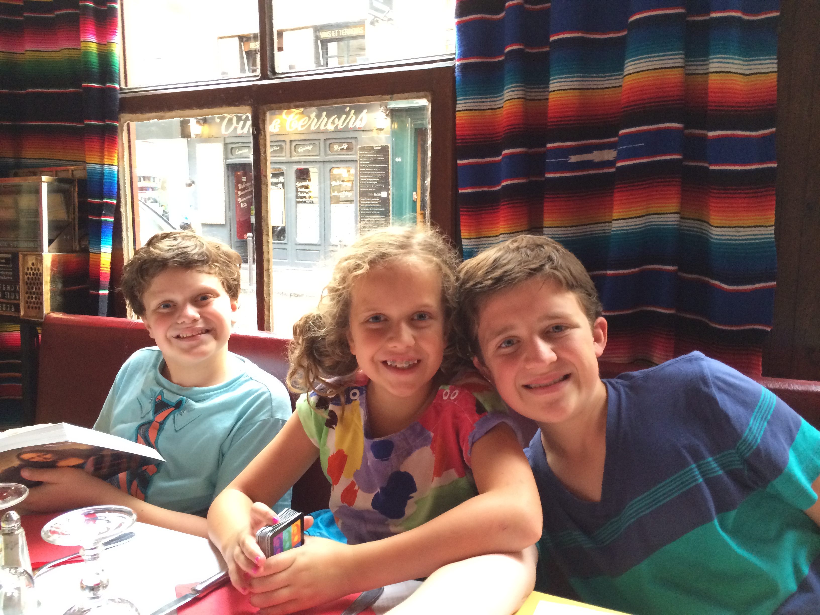 I had gone back to the apartment to rest at this point. I let them out of my sight for ONE HOUR and they all buy BERETS. Now we blend in for sure.