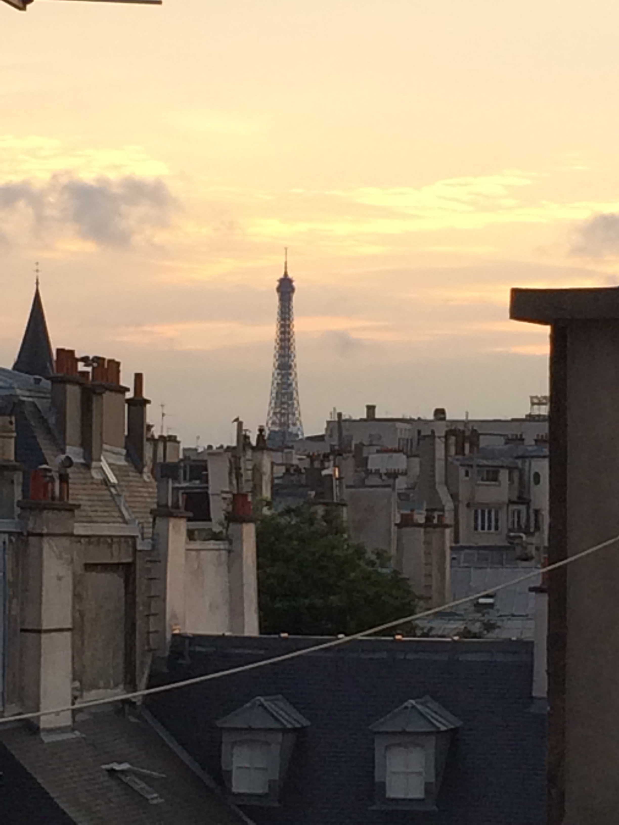 Bastille Day! Although, as we learned, the French prefer to call it Le Quatorze Juillet, and not give quite such a nod to the holiday’s violent genesis. On July 14, 1789, a determined crowd stormed the Bastille, a prison where many political prisoners were held, and thereby kicked off the French Revolution. The day is commemorated in Paris with a huge military parade and a grand fireworks display near the Eiffel Tower. We had hopes of catching BOTH, without being in the center of EITHER crowd.