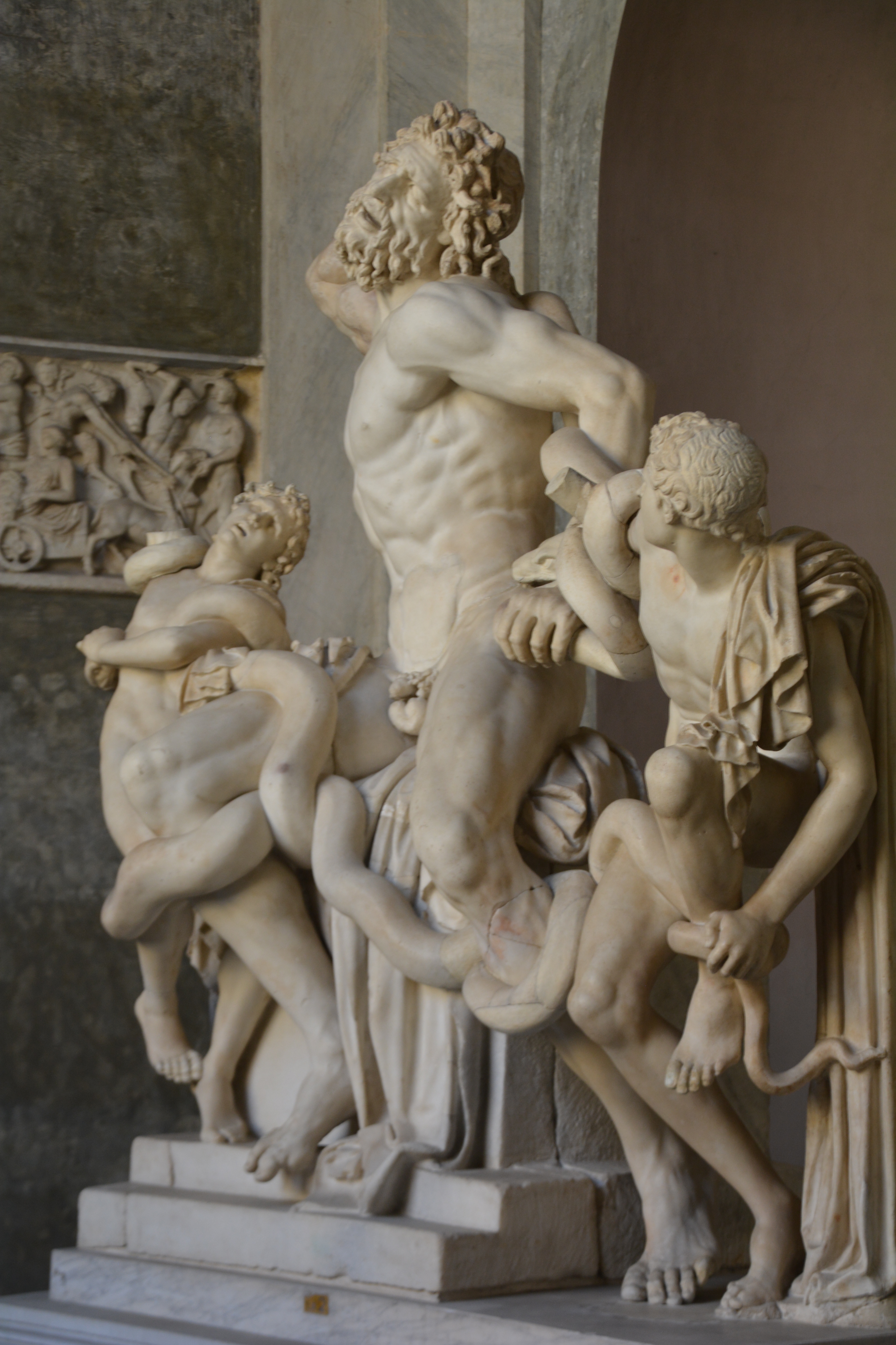 “Laocoon and His Sons”, outside the Vatican Museum. A very famous Greek sculpture that’s a brilliant example of the life and ACTION that Greek sculptors created. Here, Laocoon – a Trojan priest of Poseidon – and his two sons are being attacked by sea serpents.