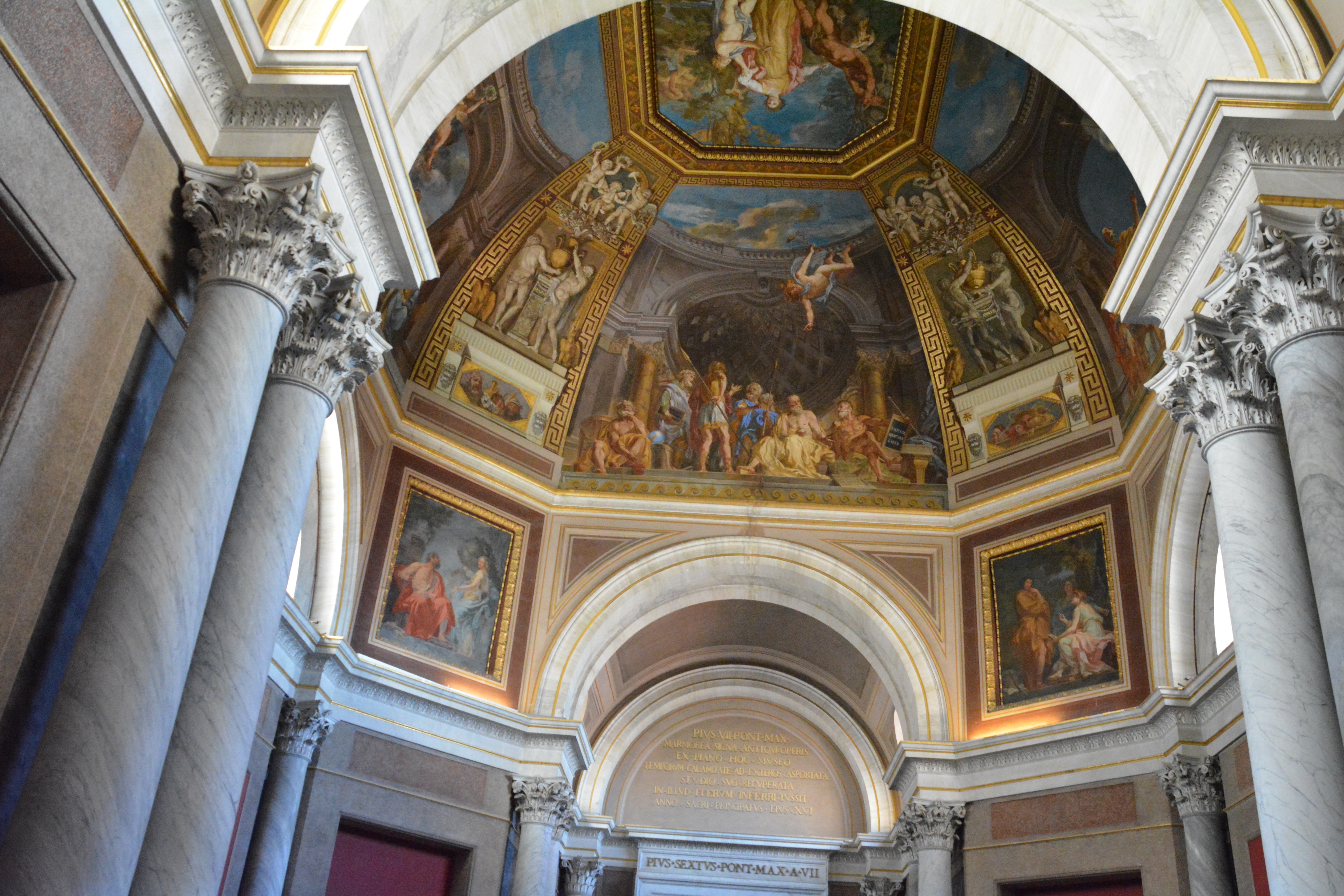 Time for the Vatican tour, with FABIO. Ah, Fabio, our tall, slender, tanned, handsome, 80-YEAR-OLD tour guide, who had been giving tours for 40 years. Every tour guide we passed greeted him with hugs and told us that he had trained them all, that he was “the best in Rome.” He may have been the best, but he wasn’t the FASTEST. We quickly realized our 2 hr. tour would turn into four (ended up being 4 ½.) He couldn’t hear very well either. As we were discussing the Sistine Chapel’s Last Judgment fresco, I tried to sound insightful by commenting that Michelangelo’s exaggerated figures looked almost grotesque. Fabio simply nodded and said, “…Yes, very sarcastic.”