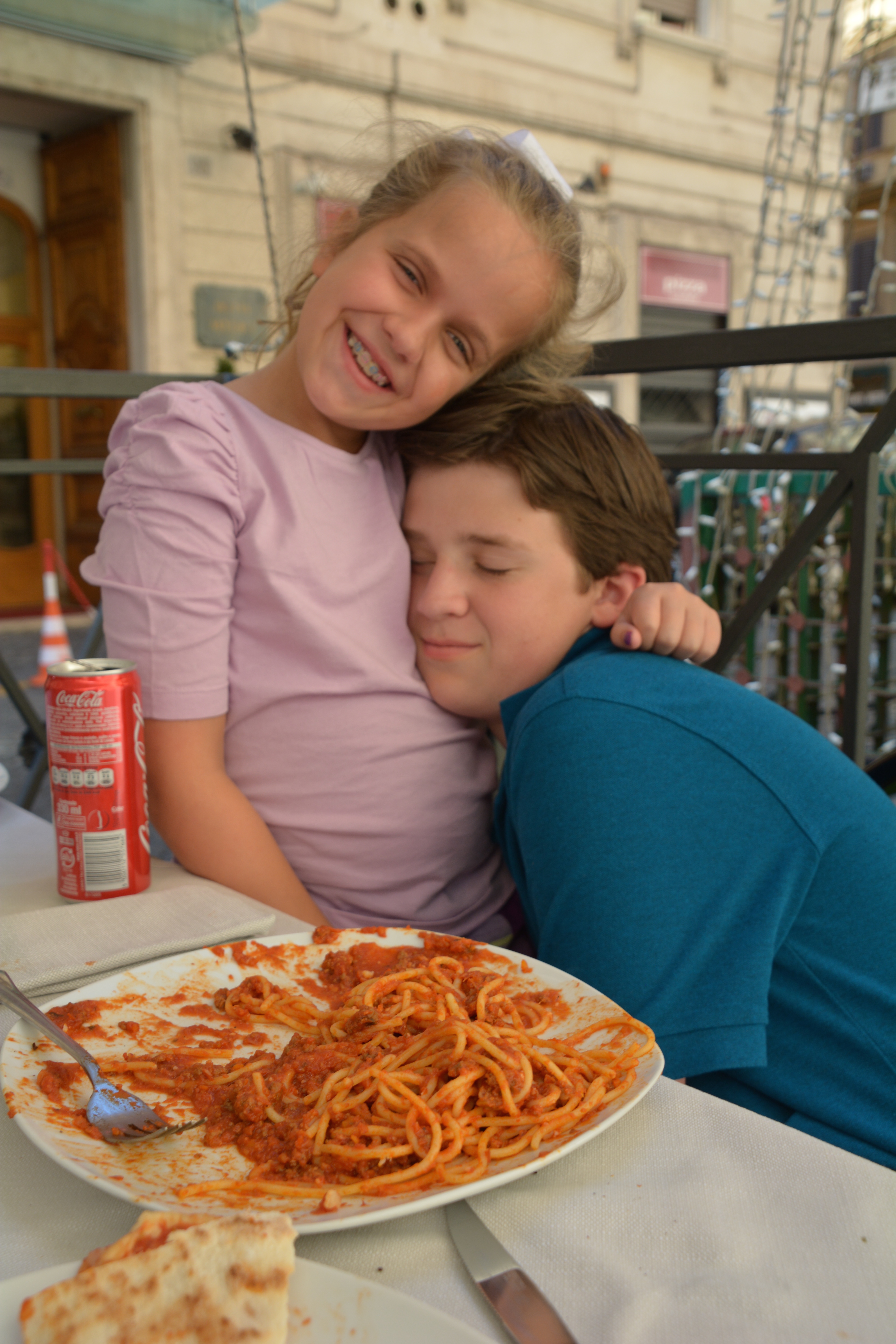 He tended to dwell on the things that he thought were significant or interesting and brushed off everything else. For instance, when in St. Peter’s Basilica, LouAnn had to ask who the corpse in the glass coffin was? He made a face and said, dismissively, “Oh, that’s Pope Such-and-Such… He’s buried with a silver mask on his face. I don’t like it! No man should be buried with a mask hiding his face! Pffftt!” O-k-a-y then, moving on. We did learn a lot about the differences between Greek and Roman sculpture. At the highest level, the Romans tended to show things at their very best. Their sculpture was more like portraiture. The Greeks were more realistic – theirs were more like snapshots of real life – the good, the bad – it had movement and meaning.
